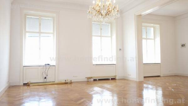 Diese wunderschön sanierte Altbauwohnung befindet sich in einer ruhigen Straße gleich beim Parlament. Das Gebäude ist ein sehr aufwendig instand gehaltenes Palais im Ringstraßenstil und verfügt über eine perfekte Infrastruktur: Geschäfte, Restaurants, öffentliche Verkehrsmittel (U2), Rathauspark etc sind zu Fuß leicht erreichbar. Die Wohnung wird derzeit hochwertig saniert und bietet folgende Räume: zentrales Vorzimmer, großes Wohn-Esszimmer, separate Küche mit Fenster, Hauptschlafzimmer, Wannebad mit WC, 2 weitere Schlafzimmer, zweites Wannenbad mit WC, Duschbad mit Gäste-Wc. Ausstattung: Parkett- und Fliesenböden, Raumhöhe von 3,80m, herrschaftliches Entree in das Gebäude. Miete: inkl BK, inkl MwSt Kaution: 3 BMM Provision: 3 MM + 20% Mwst Vertragserrichtungskosten: € 360,00 Es besteht ein wirtschaftliches Naheverhältnis, der Makler ist Doppelmakler. Aufgrund einer neuen EU-Richtlinie können wir Ihnen erst dann Unterlagen zu unseren Objekten zusenden, wenn Sie uns bestätigen, dass Sie über Ihr Rücktrittsrecht aufgeklärt wurden und unser sofortiges Tätigwerden wünschen. Sie bekommen nach Ihrer Anfrage ein Infomail, in dem Sie diese Punkte bestätigen müssen. Wir bitten um Verständnis. This very nice refurbished apartment is situated in a calm road near parliament. The building itself is very representative and has great infrastructure nearby (shops, restaurants, coffee houses, public transport - U2). The apartment was fully refurbished and has Very nice office rooms in a palace close to Ringstraße/ Parlament. It has following rooms: entree, great living dining room, separate kitchen with window, master bedroom, bathroom with tub + toilet, 2 further bedrooms, second bathroom with tub + toilet, third bathroom with shower and tub. equipment: wooden and toiled floors, high ceilings (3.80m), wooden and tiled floor. rent: general maintenance costs and VAT included deposit: 3 gross rents commission: 3 rents + 20% VAT fee for setting up the contract: € 360,00