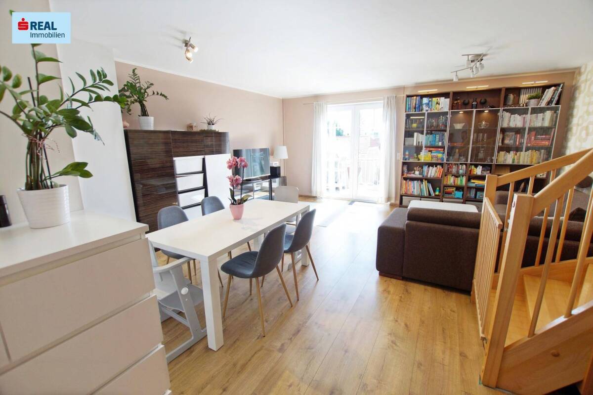 Die Lage: In nur ca. 10 Minuten Fahrzeit erreichen Sie die Bundeshauptstadt Österreichs, in weiteren 5 Minuten ist der Flughafen Wien-Schwechat erreichbar. Alles was Sie im Alltag benötigen (Apotheke, Volksschule, NMS, Polytechnikum, Kindergarten/Hort, Bank, Post, Tankstelle etc.), ist im Umfeld der Immobilie vorhanden und fußläufig erreichbar. Somit sind Sie nicht auf die unmittelbare Nutzung eines PKW's angewiesen. Besitzen Sie dennoch ein Fahrzeug, steht Ihnen der im Kaufpreis enthaltene Garagenstellplatz zur Verfügung. Die Nähe zum Stadtzentrum erleichtert die komfortable Nutzung der gebotenen öffentlichen Verkehrsmittel (Buslinie 217/218 nach Wien Simmering, 226/227 nach Wien Oberlaa, 368, 467, 469, Linie K Bhf Mödling etc.). Der Bahnhof Himberg ist in ca. 2 Gehminuten erreichbar. (R, REX, S60) In einer Gemeinderatssitzung vom 9.9.2019 wurde die barrierefreie Modernisierung des Bahnhofes (2020/2021 bis 2022) beschlossen. Die Eisenbahnkreuzung "Bahnstraße" wird für den motorisierten Individualverkehr gesperrt, umfassende Lärmschutzmaßnahmen werden getroffen. Somit kommt es zu einer deutlichen Reduktion des Verkehrsaufkommens und einer Beseitigung der entsprechenden Emissionen. Aufgrund der angrenzenden "Grün- & Freiflächen", sowie zahlreicher "Sport- & Freizeiteinrichtungen" (Waldbad, Tennis Club, Sportclub, Sporthalle, Skaterpark & Fun Court...etc.) in unmittelbarer Nähe, wird Ihnen ein größtmögliches Maß an Lebensqualität - inmitten der Stadt - zu Teil! Das Wohnhaus: Das Wohnhaus wurde im Jahr 2005 errichtet. Im Untergeschoss wurden Kellerabteile und Garagenstellplätze für PKW's etabliert. Die Liegenschaft wird seit der Errichtung natürlich sorgsam und pfleglich in Stand gehalten. Laut Vorausschau der Hausverwaltung wird die Erneuerung der Stiegenhausmalerei angedacht, bedarf aber noch einer Beschlussfassung. Entsprechende Rücklagen sind derzeit schon vorhanden. Größere Instandsetzungen sind nicht geplant. Die Wohnung: Die ausgewogen aufgeteilten und hellen Räumlichkeiten im zweiten Obergeschoss und Dachgeschoss bieten Ihnen ausreichend Platz zur persönlichen Entfaltung. Im Eingangs- & Vorzimmerbereich wurde eine Garderobe geschaffen, im angrenzenden Abstellraum können diverse Gegenstände verstaut und gelagert werden. Der kommunikative Mittelpunkt der Wohnung - der schmucke Wohn- und Esszimmerbereich - ist hofseitig nach Westen orientiert und knapp über 30 m² groß. Die Küche (mit Fenster) ist mit einer neuwertigen und maßgeschneiderten Küchenmöblierung samt elektrischer Geräte ausgestattet. Kulinarische Genüsse können Sie aufgrund des Platzangebotes auch gerne auf der 10 m² großen Terrasse (Markise mit Fernbedienung) genießen. Verweilen Sie, entspannen Sie und genießen Sie die Nachmittagssonne bis in die Abendstunden hinein! Das Badezimmer (mit Fenster) ist mit einer Wanne ausgestattet. Waschmaschine und Wäschetrockner finden problemlos Ihren Platz. Auf jeder Etage wurde eine separat gehaltene Toilette etabliert. Drei schmucke Schlafzimmer im Dachgeschoss komplettieren das Raumangebot dieser idealen Familienwohnung. Ein Kellerabteil steht natürlich auch zur Verfügung. Allgemeines: Ein Wärmepumpen-Fußboden-Heizsystem sorgt für wohlige Wärme in der kälteren Jahreszeit! Die Heizkosten betragen ca. 64,- Euro pro Monat. Der generelle Zustand dieser Immobilie ist sehr gut. Monatliche Vorschreibung ohne Wohnbauförderung: 113,10 Euro Erhaltungsbeitrag 26,48 Euro Verwaltung 189,46 Euro Betriebskosten 329,04 Euro gesamt Wohnbauförderung: Es besteht die Möglichkeit eine Wohnbauförderung in der Höhe von gesamt 89.078,85 Euro zu übernehmen (Detailinformationen werden gerne übermittelt). Der Barkaufpreis würde sich in diesem Fall um diesen Betrag verringern! Monatliche Vorschreibung bei Übernahme der Förderung: 102,97 Euro Hypothekendarlehen • 67,75 Euro Annuitätenzuschuß 183,78 Euro Wohnungsbauförderung Nachtrag 65,56 Euro Förd. Modell 1993 26,48 Euro Verwaltung 113,10 Euro Erhaltungsbeitrag 189,46 Euro Betriebskosten 613,60 Euro gesamt Resümee: Diese Immobilie besticht als tolles Gesamtpaket! Lassen Sie Ihrem Bedarf entsprechende Ideen zur Innenraumgestaltung einfließen und verwirklichen Sie Ihr persönliches Zuhause mit Charme und Stil!Hier geht's zum 360° Rundgang: https://app.immoviewer.com/portal/tour/1910574?accessKey=5f75Viele weitere Rundgänge, so wie alle neuen s REAL Immobilienangebote finden Sie auf www.sreal.at.Gerne übermitteln wir Ihnen ein aussagekräftiges Expose inkl. Außenansicht und exakter Adresse der Immobilie. Hierzu benötigen wir Ihre Kontaktdaten.Ein persönlicher und unverbindlicher Besichtigungstermin kann gerne im Anschluss vereinbart werden!Infrastruktur / EntfernungenGesundheit Apotheke <500m Arzt <4.500m Klinik <7.000m Krankenhaus <10.000m Kinder & Schulen Kindergarten <500m Schule <500m Universität <10.000m Nahversorgung Supermarkt <1.000m Bäckerei <5.000m Einkaufszentrum <1.000m Sonstige Bank <500m Geldautomat <4.000m Post <500m Polizei <1.000m Verkehr Bus <500m Straßenbahn <7.000m Autobahnanschluss <4.000m U-Bahn <7.500m Bahnhof <500m Flughafen <9.000m Angaben Entfernung Luftlinie / Quelle: OpenStreetMap