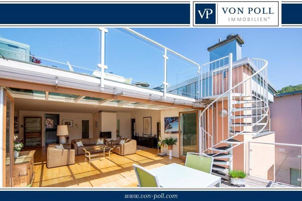 Das hier angebotene Haus-im-Haus/Penthouse erlaubt ein Maximum an Privatsphäre und erstreckt sich über die gesamte Dachetage der stilvollen Villa. Das Wohnjuwel öffnet zugleich prachtvolle Ausblicke in die Natur und bietet durch die besondere Raumaufteilung beste Wohnqualität. Dieser Dialog zwischen Architektur und Landschaft ist in Salzburg einzigartig. Bereits beim Betreten des privaten Eingangs mit Marmor-Fliesen, Zugang zum privaten Lift und eleganter Stiege mit Holzbelag ist die exklusive Ausstattung des hochwertigen Wohnjuwels ersichtlich. Die bestehenden Garderoben der Vorräume im EG und DG sind Maßeinbauten vom Tischler. Mit dem Lift oder zu Fuß durch den privaten Stiegenaufgang gelangen Sie in die Belletage. Der Vorraum führt in den lichtdurchfluteten Wohnbereich mit Fußbodenheizung, Panorama-Falt-Schiebetüren und herrlicher Aussicht ins Grüne. Sie werden begeistert sein von der Großzügigkeit der Living Area, die viel Platz für Ihren persönlichen Einrichtungsstil bietet. Der elegante Kamin mit Glas fügt sich perfekt in die Raumstruktur ein. Mittelpunkt ist dieser prachtvolle Wohnbereich mit Zugang zum Aussichtsbalkon. Vor dem Balkon befindet sich die Glasdecke, der am Dach befindlichen Terrasse, die im Wohn-/Essbereich für ein besonders helles Raumgefühl sorgt. Die über eine Wendeltreppe zugängliche Dachterrasse mit der großen begrünten Dachfläche und dem 360°-Rundumblick ist eine Besonderheit für sich. Die herrliche Aussicht vom Gaisberg bis zum Untersberg und weiter bis zum Kapuzinerberg sowie den umliegenden Grün- und Parkanlagen sind eine wahre Freude. Im Winter öffnet sich die Sicht zur Festung Hohen Salzburg. Die zeitlose Küche in Weiß, ist mit CHRIST-Kücheneinrichtung und eleganter Granitarbeitsplatte sowie Miele-Elektrogeräten ausgestattet. Das Zubereiten der Speisen erfreut hier das Herz jeden Kochs. In einem Eckschrank ist die Gastherme verbaut. Zur Ostseite der Living Area ist der Privatbereich situiert. Hier befindet sich das gemütliche Homeoffice, weiter ein Tageslichtbad mit Wanne, Doppelwaschtisch, Handtuchtrockner, Bidet und WC. Eine wahre Ruheoase ist das angrenzende Schlafzimmer mit Blick ins Grüne. Viel Platz für Kleidung steht im angrenzenden Schrankraum zur Verfügung. Westlich vom Herzstück des Wohnareals befindet sich ein Kinder- bzw. Gästezimmer. Ein kleiner Vorraum sowie ein weiteres Zimmer, das ebenfalls einen wundervollen Blick ins Grüne bietet und mit einem Waschmaschinenanschluss ausgestattet ist. Ein zweites Bad mit Dusche, Fenster und WC ergänzt das durchdachte Raumprogramm. Mit dem Lift gelangen Sie in das private Untergeschoss, das auch über die Stiege zugänglich ist. Hier befindet sich, ein geräumiger Vorraum, mit der Alarmanlage. Der große Hobby- oder/und Lagerraum, der mit großem Tischlereinbauschrank ausgestattet ist. Der separate Wellnessraum mit Sauna und Dampfbad lädt zum Entspannen ein. Hier befindet sich ein weiterer Waschmaschinenanschluss und im angrenzenden Raum liegt der separate Technikraum für den Lift, der ausschließlich von diesem Haus-in-Haus/Penthouse genutzt wird.