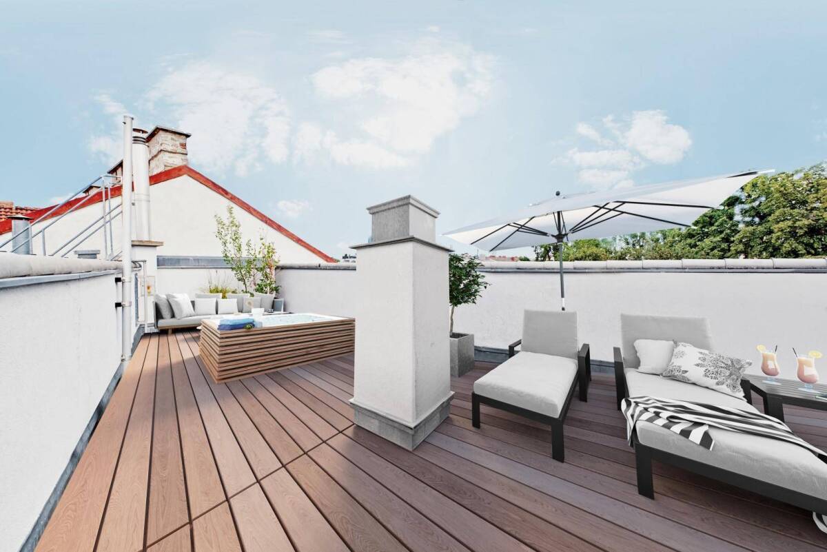 MODERNES DG-EIGENTUM IN 1190 WIEN-NUSSDORF WOHNFLÄCHE ca. 166,69 m² DACHTERRASSE ca. 20,00 m² TERRASSE ca. 15,23 m² BALKON ca. 4,00 m² ZIMMERANZAHL 4 KAUFPREIS € 849.000Im wunderschönen 19.Bezirk, nahe des Nussdorfer Platzes befindet sich im Lift-Dachgeschoß diese extravagante, topmoderne 4-Zimmer-Wohnung mit Dachterrasse, Terrasse und Balkon. Die Wohnfläche ist auf zwei Ebenen aufgeteilt und ermöglicht so ein ungestörtes Wohnen der Eltern in der Hauptebene und dem Kinderbereich mit zweitem Bad in der unteren Ebene. Nicht nur der gut durchdachte Grundriss sondern auch der gepflegte Zustand der Wohnung, vergleichbar mit einem Erstbezug, lässt diese Immobilie zu Ihrer Traumwohnung werden.Die Hauptebene teilt sich in den großzügigen Dielenbereich mit Gästetoilette und Zugang zum ca. 50 m² großen, lichtdurchfluteten Wohnbereich mit offener Küche (ausgestattet mit Miele- und Neff-Geräten) auf. Von hier können Sie auch die Terrasse sowie über eine Wendeltreppe die traumhafte Dachterrasse mit einem Rundumblick in die Landschaft von Nussdorf erreichen. Ein moderner Kachelofen sorgt für ein heimeliges Wohngefühl. Das Masterbedroom mit Balkon ist mittels der begehbaren Garderobe mit dem luxuriösen Bad verbunden. Dieser ca. 19 m² große Wellnessbereich ist mit Wanne, Dusche, Doppelwaschbecken, Toilette und Sauna ausgestattet.Im Untergeschoß befinden sich die beiden weiteren Schlaf-/Kinderzimmer und das Bad mit Dusche, Waschbecken und Toilette. Auf dieser Ebene befindet sich weiters ein Stauraum mit der Heiztechnik (Gasetagenheizung) sowie ein weiterer Stauraum mit einem Waschmaschinenanschluss.Highlight dieser Wohnung ist nicht nur die angenehme Größe aller lichtdurchfluteten Räume sondern auch die uneinsehbare Dachterrasse mit Sonnensegel und einem Fernblick vom Feinsten Richtung Kahlenberg. Es besteht die Möglichkeit, auf der Dachterrasse ein Whirlpool aufzustellen. Luxus pur - und das mitten in der Stadt.Haben wir hier Ihre Traumwohnung beschrieben? Erfüllen Sie sich Ihre Wünsche und leisten Sie sich jene Lebensqualität, die Sie sich verdient haben.AUSSTATTUNG: • Baujahr 2007 • Parkett- und Fliesenböden • Wärmeschutzfenster mit Innenjalousien • Dachflächenfenster mit elektr. bedienbaren Rollläden • Gasetagenheizung • Klimaanlage • Kellerabteil • Fahrrad- und Kinderwagenraum • Garagenplatz • Energiekennzahl: 42 kWh/m²aLAGE GUT, ALLES GUT. Eine gesuchte Grünlage im wunderschönen Nussdorf in 1190 Wien-Döbling. Schöner, ruhiger und zentraler Wohnen geht fast nicht mehr. Die öffentliche Anbindung ist einfach perfekt, die Straßenbahnlinie D sowie der nahe Bahnhof Nussdorf mit der Franz Josefs-Bahn (S 40) bringen Sie in kürzester Zeit in die City bzw. zur U-Bahn Heiligenstadt. Mit dem Bus sind Sie ebenfalls ganz rasch in Richtung Klosterneuburg bzw. U-Bahn Heiligenstadt unterwegs. Alle öffentlichen Verkehrsmittel sind in nur 2-3 Gehminuten erreichbar.In der Heiligenstädter Straße finden Sie eine ausgezeichnete Infrastruktur vor, Einkaufen, Bank, Post, Gastronomie und vieles mehr. Das Einkaufszentrum Q19 ist lediglich 3 Autominuten entfernt.Kindergärten, öffentliche und private Schulen, - alles befindet sich in unmittelbarer Umgebung. Auch der Kindergarten und die Volksschule des Lycée Francais sind in kürzester Zeit erreichbar.Die Heurigenkultur von Grinzing und Nussdorf werden Sie rasch schätzen lernen. Ebenso wie die schönsten Weinberge von Wien - und das beinahe direkt vor Ihrer Haustüre. Freizeitsportler werden den Kahlenberg und die Höhenstraße zu ihrem erklärten Ziel für die sportliche Betätigung erheben. Aber auch Spaziergänge an der Donau entlang des Treppelweges können Sie geniessen.Mit dieser perfekten Immobilie werden Sie Ihrem Wohntraum ein Stück näher kommen - repräsentativ, modern, top ausgestattet und in Bestlage von Döbling.Bitte beachten Sie, dass wir eine Nachweispflicht gegenüber dem Eigentümer haben, daher können nur Anfragen mit vollständiger Angabe der Anschrift sowie Angaben zur Person wie Name und Telefonnummer bearbeitet werden.Die Immobilien GmbH. verarbeitet personenbezogene Daten nach den datenschutzrechtlichen Bestimmungen. Weitergehende Informationen finden Sie unter https://mcimmobilien.at/datenschutz/Infrastruktur / EntfernungenGesundheit Arzt <500m Apotheke <1.000m Klinik <2.500m Krankenhaus <2.500m Kinder & Schulen Schule <500m Kindergarten <2.000m Universität <1.000m Höhere Schule <1.500m Nahversorgung Supermarkt <500m Bäckerei <500m Einkaufszentrum <1.000m Sonstige Bank <500m Geldautomat <500m Post <500m Polizei <500m Verkehr Bus <500m Straßenbahn <500m U-Bahn <1.500m Bahnhof <500m Autobahnanschluss <1.000m Angaben Entfernung Luftlinie / Quelle: OpenStreetMap