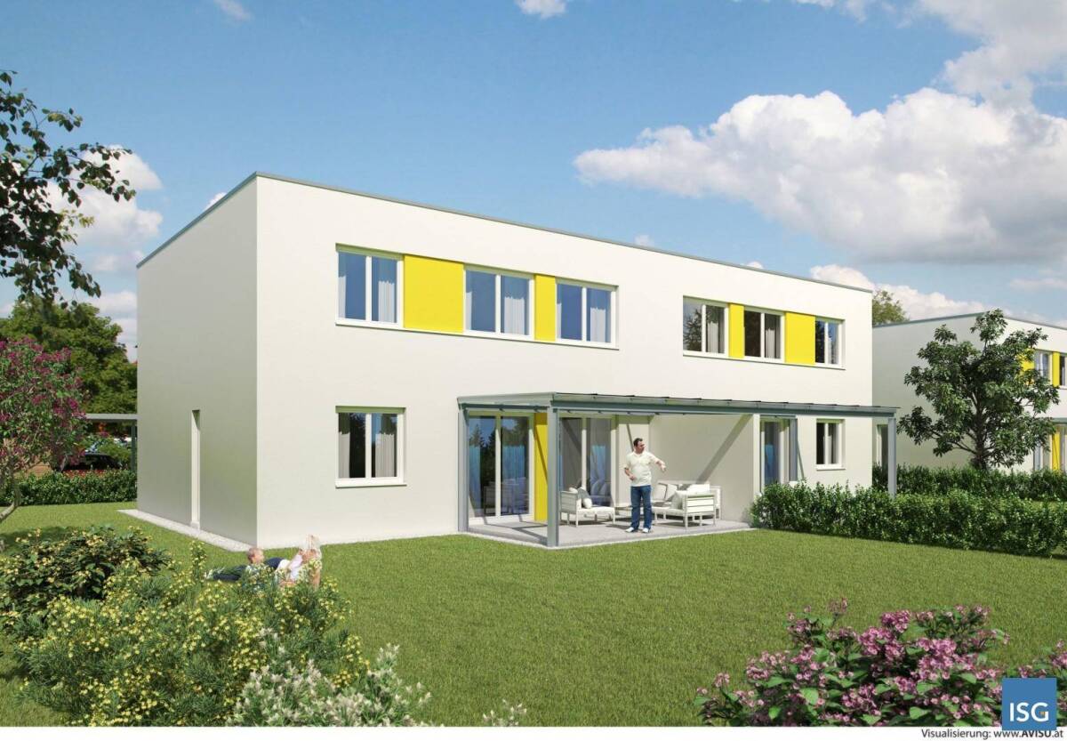 Die sechs modern ausgestatteten Reihenhäuser bieten durch ihre Südausrichtung helle und freundliche Wohnräume auf ca. 113 m² Gesamtfläche. Sie sind als drei Doppelhäuser konzipiert und zur Gänze unterkellert. Auf der 15 m² großen und voll überdachten Terrasse kann Wohnen im Freien stattfinden.Im Erdgeschoß befindet sich der zentrale großzügig geplante Wohn-/Essbereich mit offener Küche. Diese moderne Anordnung sorgt für ein angenehm freies Raumgefühl. Im Obergeschoß stehen ein geräumiges Bad mit WC, ein Schlafzimmer mit Schrankraum sowie zwei weitere Zimmer zur Verfügung. Ihren Pkw parken Sie geschützt im Carport direkt am Haus. Ein zweiter nicht überdachter Stellplatz ist zusätzlich vorhanden.Zur Ausstattung gehören:Fußbodenheizung (örtliche Nahwärme),kontrollierte Wohnraumlüftung (dezentral),Bäder mit Dusche und Badewanne,schlüsselfertige Ausführung in bester Qualität (massive Ziegelbauweise, außen hinterlüftete Faserzement-Plattenfassade),überdachte Terrasse mit ca. 15 m²,Carport + Pkw-Abstellplatz,Grundstücksgrößen von 329 bis 364 m².Baubeginn: Herbst 2020.Baufertigstellung: voraussichtlich Anfang 2022.