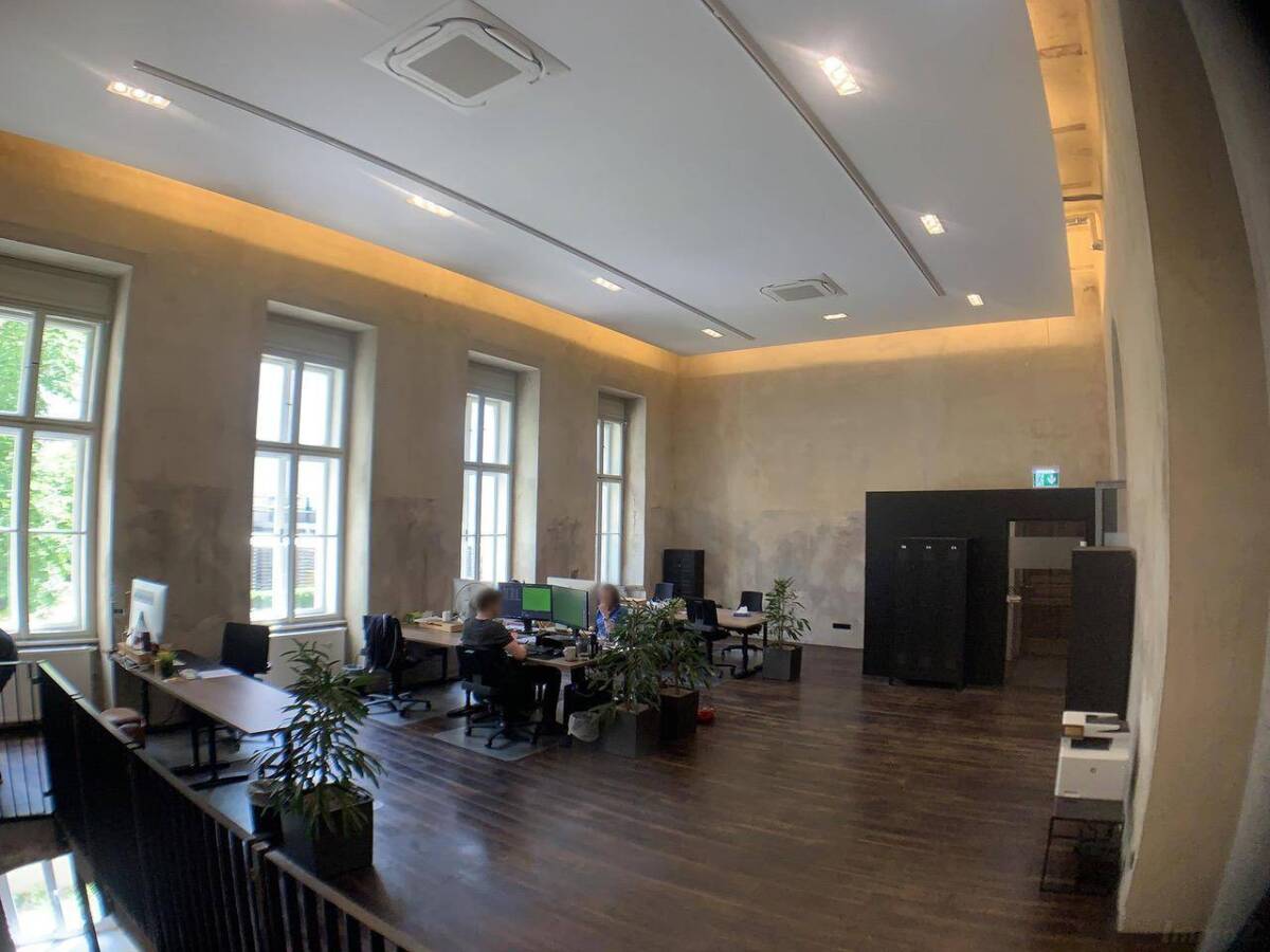 Das sehr schön restaurierte Großraumbüro ist mit einer Klimaanlage ausgestattet und eignet sich für verschiedene Branchen. Die neu installierte Küche verbleibt und sonstiges Mobiliar könnte bei Bedarf abgelöst werden.