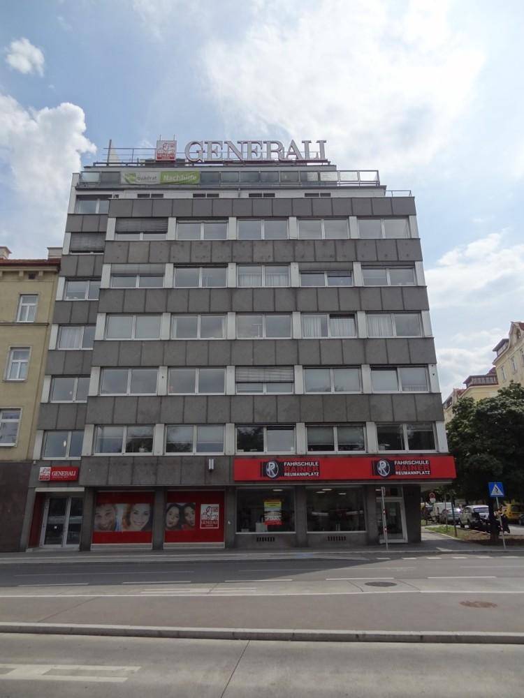 Das in den 70er Jahren errichtete Bürogebäude ist in Massivbauweise errichtet und sowohl nach Westen und vor allem nach Norden auf den Reumannplatz orientiert. Die achtgeschossige Fassade ist horizontal zum einen mit Fensterbändern, zum anderen mit einer Steinfassade gegliedert. Das Erdgeschoss ist mit großen Schaufenstern als Geschäftsfläche organisiert und bietet in der Neusetzgasse den Eingang. Die Mieterstruktur stellt sich derzeit wie folgt dar: - Erdgeschoß: Fahrschule Rainer - 1-4 Geschoß: Generali Versicherung AG - Geschäftsstelle Favoriten - 7. Geschoß: Bildungsmanagement GmbH-Lernquadrat Allgemeine Bereiche Ein Glasportal mit Video-Sprechanlage bildet den Eingang in das allgemeine Stiegenhaus, dessen Boden und Treppen sind mit Terrazzofliesen belegt, die Wände sind weiß gemalt. Im Kellergeschoss befinden sich unterschiedlich große Lagerflächen, die beheizt sind und bei Bedarf angemietet werden können.