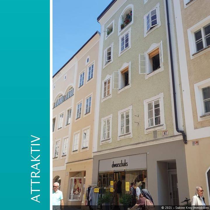 Gepflegte 87qm Wohnung zentrale Altstadtlage Diese hübsche Altbauwohnung liegt in einem sanierten Wohnhaus in der Linzergasse und bietet auf einer Wohnfläche von 87 qm angenehmen und großzügigen Wohnkomfort. Die Wohnküche mit Fenster befindet sich im Eingangsbereich und ist mit einer Küchenzeile und einer Esstheke ausgestattet. Der geräumige Wohnraum ist zur Linzergasse ausgerichtet. Der Schlafraum, mit seinen attraktiven Deckengewölben ist vom Wohnraum aus zu begehen. Das Badezimmer, das WC und ein Abstellraum sowie ein Schrankbereich sind zum begrünten Innenhof ausgerichtet. Im Innenhof steht eine gemütliche Terrasse zur allgemeinen Nutzung frei.