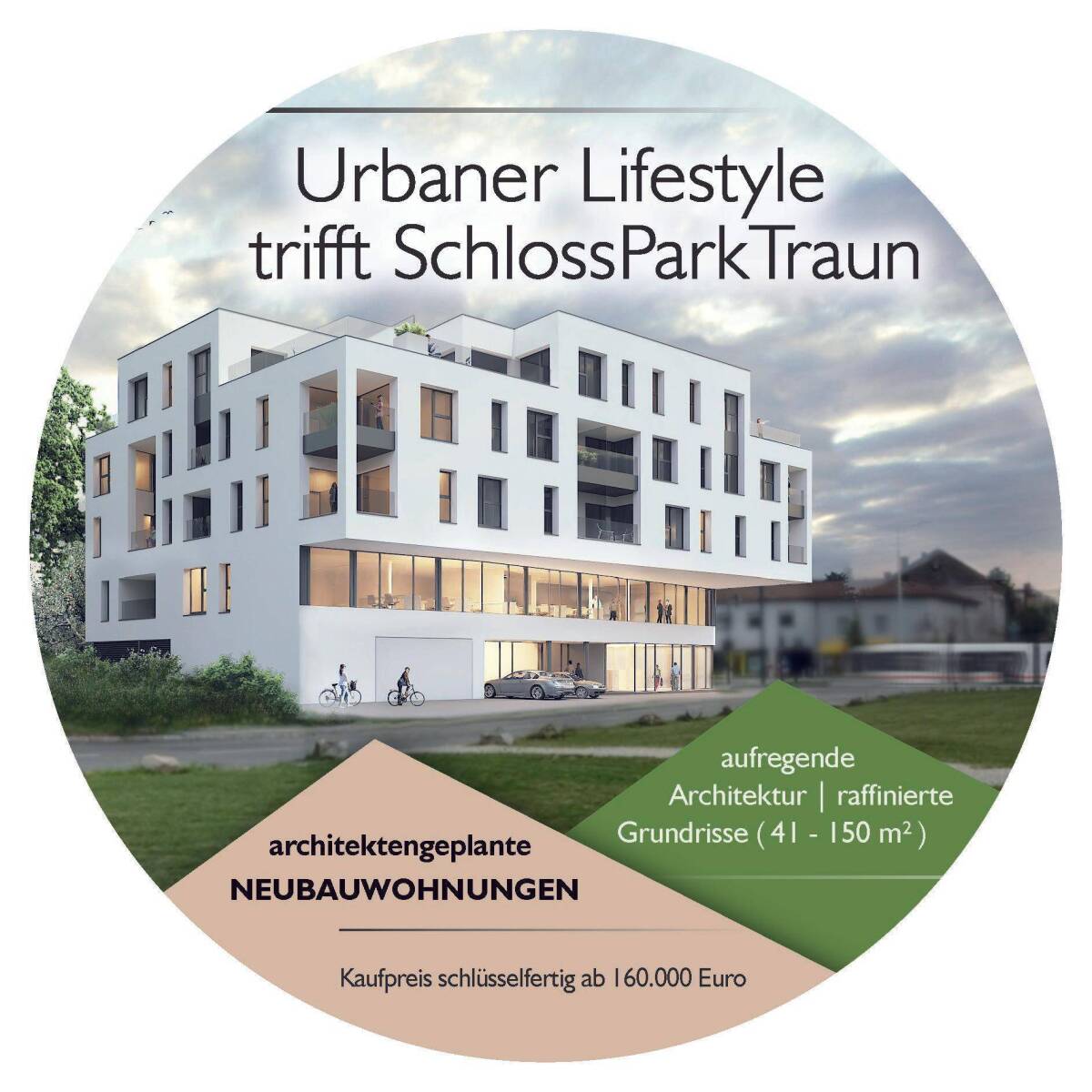 HERZLICH WILLKOMMEN AM SCHLOSSPARK – IHR PERFEKTER LEBENSMITTELPUNKT IN TRAUNDAS PROJEKTWenn es um die eigenen vier Wände geht, sollte man sich nicht mit halben Sachen zufriedengeben. Schon gar nicht, wenn man nach einer dauerhaften, perfekten Lösung sucht. Wir laden Sie herzlich dazu ein, gemeinsam Ihr individuelles neues Zuhause in einer der besten Wohnlagen von Traun zu gestalten.Auf einem der letzten bebaubaren Grundstücke im Stadtkern von Traun, entstehen vis-à-vis vom Schloss Traun, 27 Neubau-Eigentumswohnungen in Optimalenergiebauweise. Das, vom Architekturbüro arkade zt gmbh entworfene Wohnprojekt, besticht durch raffinierte Grundrisse, aufregende Architektur in geschichtsträchtiger Umgebung, wo Sie sich auf Anhieb ganz zuhause fühlen werden.Der außergewöhnliche Standort am SCHLOSSPARK TRAUN liegend, inmitten bester Infrastruktur, wird Sie mehr als begeistern und alle Vorteile modernen, urbanen Wohnens wieder spiegeln.DIE LAGETraun, ist nach Leonding die 2.größte der Speckgürtelgemeinden im Großraum Linz und die 5 größte Stadt von ganz Oberösterreich. Traun ist ein beliebter Wohnort geworden, da die Stadt über eine sehr gute Infrastruktur, hohe Wohnqualität, schulische Einrichtungen, große Einkaufsmöglichkeiten, viele sportliche sowie kulturelle Angebote, Bezirksbehörden, eine rasche Verkehrsanbindung an die nahe Landeshauptstadt Linz und an die Autobahnen A1 und A25 verfügt. Im Süden begrenzt der Fluss Traun das Gemeindegebiet und im Norden die Wiener Straße (B 1).Zunächst zur unmittelbaren Wohnlage der Wohnungen. Diese werden, wie eingangs erwähnt auf einem Grundstück direkt neben dem herrlich angelegten Schloss-Park-Traun errichtet. Von ihrem neuen Zuhause haben Sie (fast) alles in fußläufiger Entfernung inkl. Straßenbahnhaltestelle Schloss Traun der Linie 4.Die nächstgelegene Autobahnauffahrt Haid erreicht man in 2.5 km.Nach Linz/Hauptplatz 14 KmMarchtrenk 11 KMNach Wels/Hauptplatz 19 KMNach Enns/Hauptplatz 23 KMNach Steyr/Hauptplatz 30 KMDIE INFRASTRUKTURDa Traun über eine hervorragende Infrastruktur verfügt, würde es den Rahmen sprengen, Ihnen hier alles aufzuzählen. Ein paar Tipps und Hinweise möchten wir Ihnen aber schon jetzt geben, was sich in der unmittelbaren Umgebung ihres neuen Zuhauses befindet. Fußläufig erreichen Sie in nicht mal 5min den schön gestalteten Hauptplatz von Traun. Sternförmig rund um den Hauptplatz finden Sie eine Vielzahl an unterschiedlichsten Einrichtungen und Einkaufsgelegenheiten aller Kategorien.Der jeden Freitagnachmittag in der ehemaligen Fußgängerzone (Linzer Straße) abgehaltene Bauernmarkt mit vielen regionalen Spezialitäten, ist ein Anziehungspunkt für die Bevölkerung Trauns und der Umgebung. Am letzten Samstag im Juli findet jedes Jahr im Stadtzentrum, das beliebte „Traun-Vinum“ statt, wobei die besten Winzer Österreichs ihre besten Weine vorstellenund ausschenken. Weiters sind die Einkaufscitys „Pluscity und das Haidcenter“ in wenigen Minuten mit dem Auto erreichbar.Neben der guten infrastrukturellen Versorgung können Sie auch auf ein reichhaltiges, kulturelles und gastronomisches Angebot in Traun bzw. in unmittelbarer Nachbarschaft zu ihrem neuen Zuhause zurückgreifen.Nur einen Steinwurf neben dem Schloss Traun entfernt, befindet sich der „Kultur.Park.Traun Spinnerei“. In der „Spinnerei“ werden den Gästen Kabarett, Kleinkunst, Konzerte (z. B. Rock, Pop, Alternative, a cappella),Theaterprojekte der Trauner Schulen und Weiteres angeboten. Weitere Kulturelle Veranstaltungen finden Sie auch in der Galerie Traun und im Schloss Traun. Im Frühsommer finden die „Trauner-Kulturtage“ statt und Im Sommer werden unter dem Titel „FR.I.Z.“ (Freitag im Zentrum) open-air Rock-Konzerte auf dem Pfarrplatz abgehalten. Traun belebt! Kulinarische Genüsse finden Sie in der Trattoria Geppetto (3min Fußweg). Hier erleben Sie Italien pur – nicht nur sämtliche Zutaten der Speisen werden zweimal wöchentlich direkt aus Italien angeliefert, auch alle Mitarbeiter stammen aus verschiedensten Teilen Italiens. Das ist Italien pur! Auch die Trauner Schmankerlhütte (2min),die FAB Kantine im Glashaus (2min) und das Restaurant Schloss Traun (2min),mit seinem einladenden Gastgarten inmitten dem Schlossambiente lädt zum Verweilen ein. Ein weiterer kulinarischer Tipp ist das „SUDHAUS TRAUN“ (3min). Hier genießen Sie regionale Jausenschmankerl und trinken dazu hausgebraute Bierspezialitäten nach alten Rezepten und feinste Destillatspirituosen. Und alles quasi ums Eck von ihrem neuen Zuhause. DIE FREIZEIT UND KINDEREINRICHTUNGENDie Gemeinde Traun verfügt über eine große Auswahl an Schul-und Betreuungseinrichtungen. 9 Kindergärten, sowie 2 Pfarrcaritas-Kindergärten, 5 Kinderhorte mit Krabbelstuben und Tagesmütter, 4 Volksschulen, 2 Mittelschulen, 1 Polytechnische Schule, 1 integrative Ganztagesschule. Für die Oberstufen gibt es 1 Bundeshandelsakademie und -schule, 1 Bundesrealgymnasium und 1 Höhere technische Lehranstalt und Fachschule für Informations- und Kommunikationstechnologie/Datenverarbeitung.Zu den wichtigsten Freizeiteinrichtungen von Traun zählen das Badezentrum Traun mit seinem Hallenbad, Freibad, seiner Saunawelt und der Eishalle, sowie der sich gleich daneben befindliche Oedter See, welcher im Sommer tausende Badegäste anlockt. Hier gibt es auch Zwei Beachvolleyballplätze, sowie den Renata Hönisch Motorik Park. Ein besonderes Erlebnis ist der wunderbare Palmenstrand am See. Jung und Alt aus Nah und Fern strömen zum Badesee Traun/Oedt um an Oberösterreichs einzigartigem Sandstrand „Red Coconut Beach“ karibisches Flair zu genießen.Kennen Sie den BIKE-PARK am Oedter See?Auf einer Fläche von 6.000 m² erstreckt sich Oberösterreichs größte und vielseitigste Bike Anlage. Von einem 5 m hohen Starthügel aus kann jeder auf einer der sieben verschiedenen Strecken sein Können auf dem Bike unter Beweis stellen - egal ob Anfänger oder Profi.Kinderspielplätze /