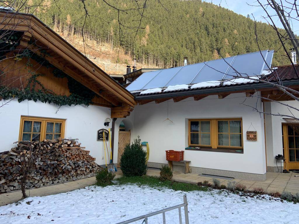 Zwischen Mayrhofen und Finkenberg befindet sich in ruhiger und sonniger Lage dieses sehr gepflegte Objekt. Das Haus verfügt im ebenerdigen Geschoß über eine vollausgestattete Küche, ein WC und einen großzügigen Wohn- Essbereich, welcher mit einem Kachelofen ausgestattet ist. Im Untergeschoß sind vier Schlafzimmer und zwei Bäder und zwei Toiletten untergebracht. Im Außenbereich stehen zwei Terrassen und eine Gartensauna, sowie eine Doppelgarage mit Lagerraum (Werkstatt) und ein weiterer Stellplatz zur Verfügung. Photovoltaik, Solar und ein Vollwärmeschutz garantieren einen niedrigen Energieverbrauch und sorgen in Verbindung mit der offenen Raumgestaltung im Erdgeschoß für ein angenehmes Raumklima. Durch die zentrale Lage und die gute Anbindung an den öffentlichen Verkehr kann der Aufenthalt auch Autofrei gestalten werden. Die Bushaltestelle für die Mayrhofner und die Finkenberger Bergbahnen befinden sich vor der Haustür. Einkaufsmöglichkeiten sind in unmittelbarer Nähe vorhanden. Die Region bietet sowohl im Sommer als auch im Winter zahlreiche Sport- und Freizeitmöglichkeiten, das Zentrum von Mayrhofen mit seinen verschiedenen Läden, Bars, Cafes und Restaurants lädt zum Flanieren ein.Angaben gemäß gesetzlichem Erfordernis: Heizwärmebedarf: 270.2 kWh/(m²a)