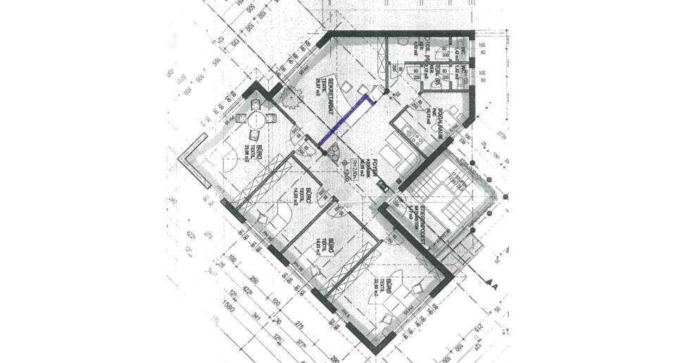 Die Büro-Gewerbefläche befindet sich im 1. Obergeschoss und erstreckt sich über 152,55 m² zuzüglich dem Stiegenhaus Podest mit 5,77 m². Teilweise ist das Büro mit Schreibtischen und Kästen möbliert und verfügt über eine kleine Betriebsküche. Weiters ist eine Fußbodenheizung vorhanden sowie eine Fußbodenkühlung für den Sommer und eine Alarmanlage. Zusätzlich verfügt das Büro auch über ausreichend Parkplätze.