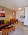 Das modern ausgestattete Apartment mit einer Größe von 45 qm eignet sich perfekt für Geschäftsreisende. Das separate Schlafzimmer mit Doppelbett bietet Ihnen hohen Wohnkomfort während Ihres Aufenthalts in Wien.Das Wohnzimmer ist mit einer ausziehbaren Couch und einem Esstisch für bis zu 4 Personen ausgestattet. Im Wohnzimmer befindet sich außerdem ein Fernseher mit SAT-TV. Vom Wohnzimmer aus haben Sie Zugang zu dem gemütlichen Balkon des Apartments. Im Vorraum des Apartments befindet sich ein separater Abstellraum.