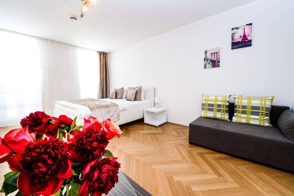 Die ausgesprochen charmante, möblierte Wohnung mit 45,56 m² Wohnfläche kann sofort bezogen werden. Der absolute Wohngenuß bietet Ihnen eine hochwertige Ausstattung.Die Wohnung ist sehr sonnig und wie folgt aufgeteilt: - Vorraum- Teeküche- ein Wohn-Schlafzimmer - ein Badezimmer, (mit Dusche, Waschbecken und WC)Ausstattung:Die Wohnung ist vollmöbliert, verfügt über eine Kabel/Satelliten-TV, Sicherheitseingangstüre mit Sicherheitsbeschlag, sowie einer Gegensprechanlage. Ein hochwertiger Parkettboden ist ge-nauso selbstverständlich, wie eine rundum ausgestattete Küche mit Mikrowelle, Kaffeemaschine und vielem mehr.Sämtliche Nebenräume wie ein Fahrradabstellraum, ein Kinderwagenraum und Lift sind vor-handen. Auf Anfrage ist ein wöchentlicher Reinigungsservice des Apartments möglich (gegen Gebühr). Weiters besteht die Möglichkeit des Mietens eines Abstellplatzes in der Tiefgarage direkt im Haus. Die Miete beinhaltet sämtliche Nebenkosten (Wasser, Strom, Heizung).Besonders zu erwähnen ist, dass sich die Wohnung selbst und das Haus in einem außergewöhnlich guten Zustand befinden. Energieausweis Dieses Gebäude unterliegt nicht den Anforderungen der EnEV.