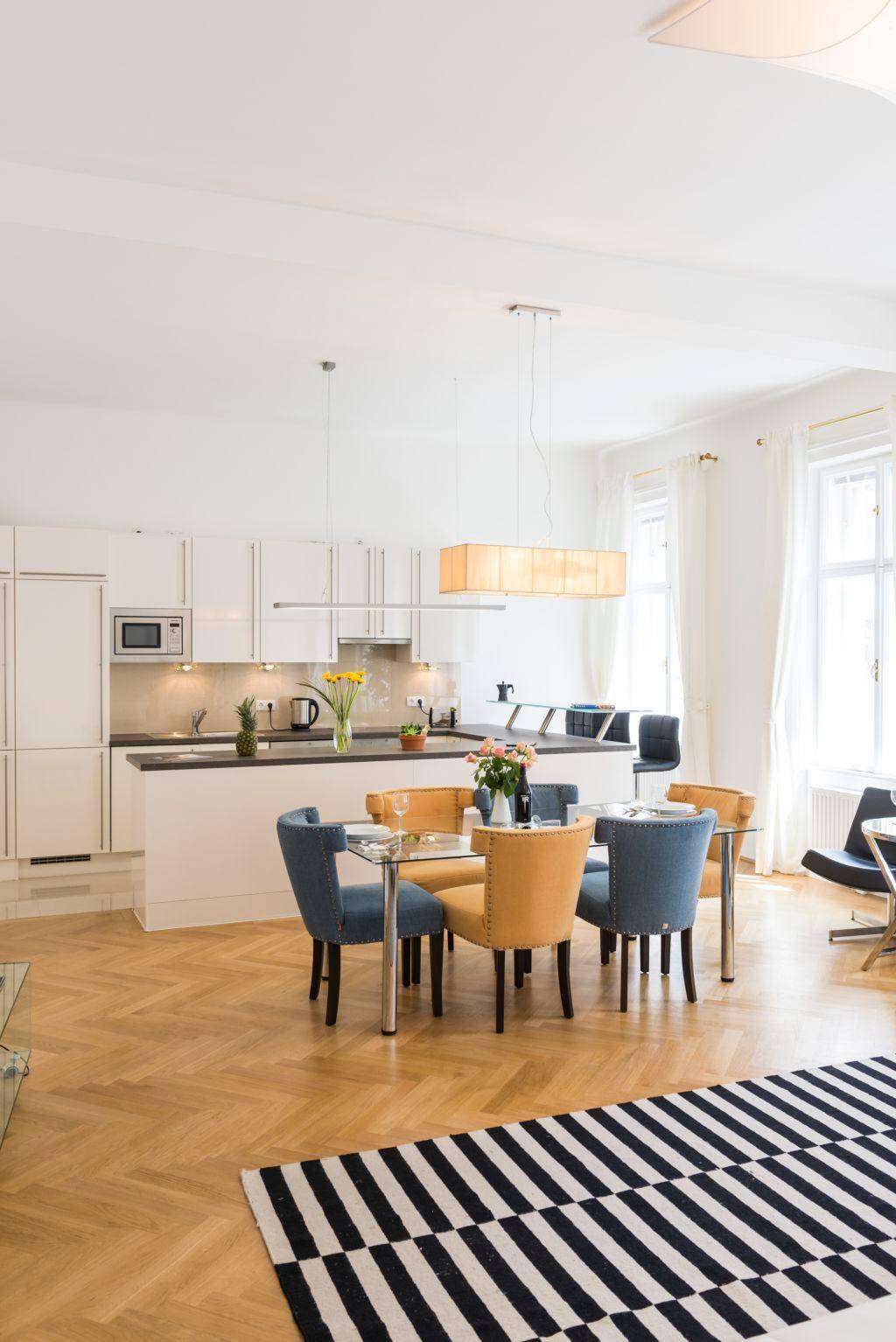 Machen Sie es Sich in unserem modernen Executive Suites Margareten Appartement im 5. Wienerbezirk gemütlich. Auf einer Wohnfläche von 60 Quadratmetern bietet die stilvoll und liebevoll eingerichtete Wohnung gemütliche Schlafmöglichkeiten für bis zu 6 Gästen, mit insgesamt zwei Doppelbetten in den Schlafzimmern und zwei Einzelbetten im dritten Schlafzimmer. Die Küche ist voll ausgestattet, damit Sie vor, oder nach, einem abenteuerlichen Tag auch eigen gekochte Mahlzeiten genießen können. Küche und Essbereich sind Teil des charmanten und lichtdurchfluteten Wohnzimmers. Das moderne Bad ist mit einer Badewanne ausgestattet, und ein begehbarer Kleiderschrank bietet Ihnen reichlich Platz für Ihre Sachen. Die Lage nahe des Zentrums macht diese charmante Wohnung zu einem tollen Ausgangspunkt, um Wien und einen seiner lokalen Bezirke zu entdecken und zu erleben. Wifi ist in der gesamten Wohnung kostenlos verfügbar. Ein Flughafentransfer kann auf Anfrage arrangiert werden. Energieausweis Dieses Gebäude unterliegt nicht den Anforderungen der EnEV.