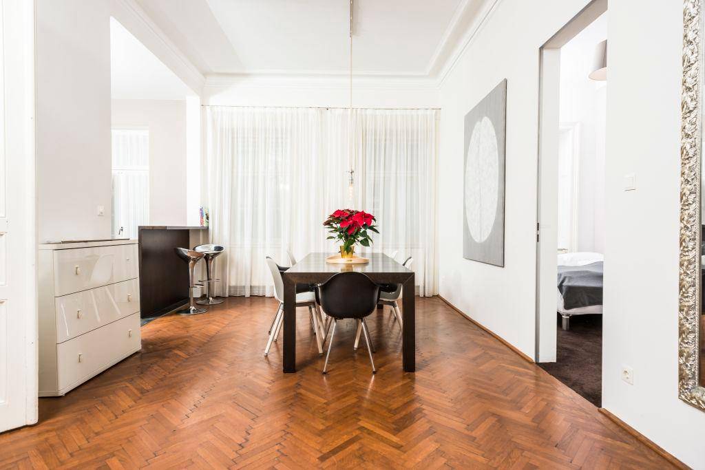 Unsere Senator Suite Stephansplatz im Herzen Wiens wartet darauf, Ihnen die Atmosphäre der Kulturstadt näher zu bringen. Auf 165 Quadratmeter ausgebreitet bietet die helle, moderne Luxuswohnung gemütlich Platz für bis zu 10 Gäste. Zusätzlich zum bequemen Wohnzimmer verfügt die Wohnung über drei Schlafzimmer, mit insgesamt drei Doppelbetten und zwei Schlafsofas. Zwei elegante Badezimmer sind mit Wanne und Dusche ausgestattet, weiters verfügt die Wohnung über zwei WCs. Die Küche ist voll ausgestattet, damit Sie im, direkt an die Küche anschließenden, offenen Essbereich vor oder nach einem abenteuerlichen Tag eigen gekochte Mahlzeiten genießen können. Zusätzlich bietet Ihnen ein kleiner Balkon mit Ausblick auf den Innenhof Ihre ganz persönliche Oase im Herzen Wiens, wo Sie Sonnenstrahlen aufnehmen und genießen können. Wifi ist in der gesamten Wohnung kostenlos verfügbar. Ein Flughafentransfer kann auf Anfrage arrangiert werden. Energieausweis Dieses Gebäude unterliegt nicht den Anforderungen der EnEV.