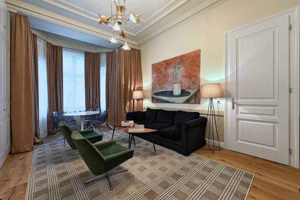 Dieses außergewöhnlich luxuriöse 58 m²-Apartment in einem wunderschönen Wiener Altbaugebäude befindet sich direkt angrenzend an das Zentrum Wiens, dem 1. Bezirk. Es besteht aus einem großzügigen Wohnzimmer mit Essbereich, einer voll ausgestatteten Küche, zwei Schlafzimmern, einem Badezimmer mit bodengleicher Dusche, einem separaten WC und einem Eingangsbereich. Außerdem ist das Apartment mit einer Klimaanlage ausgestattet.Die in der Wohnung verwendeten Möbel und Materialien werden höchsten Ansprüchen gerecht, vom Boxspringbett mit zwei verschiedenen Härtegraden über Designersessel bis hin zu handverlesener Kunst. Ein kostenloser High-Speed-Internetanschluss und LED-Fernsehgeräte mit Kabel-TV in den Schlafzimmern und im Wohnzimmer sind vorhanden.Frische Handtücher, Duschtücher, Duschvorleger und Bettwäsche sind vorhanden. Ebenso sind Reinigungsgeräte wie Staubsauger und Mop vorhanden. Reinigungsservice und Bettenservice sind auf Wunsch gegen Aufpreis verfügbar.Die Wohnung ist eine Nichtraucher-Wohnung.Das Haus verfügt über einen Aufzug, eine Gegensprechanlage und einen leicht erreichbaren Müllraum.