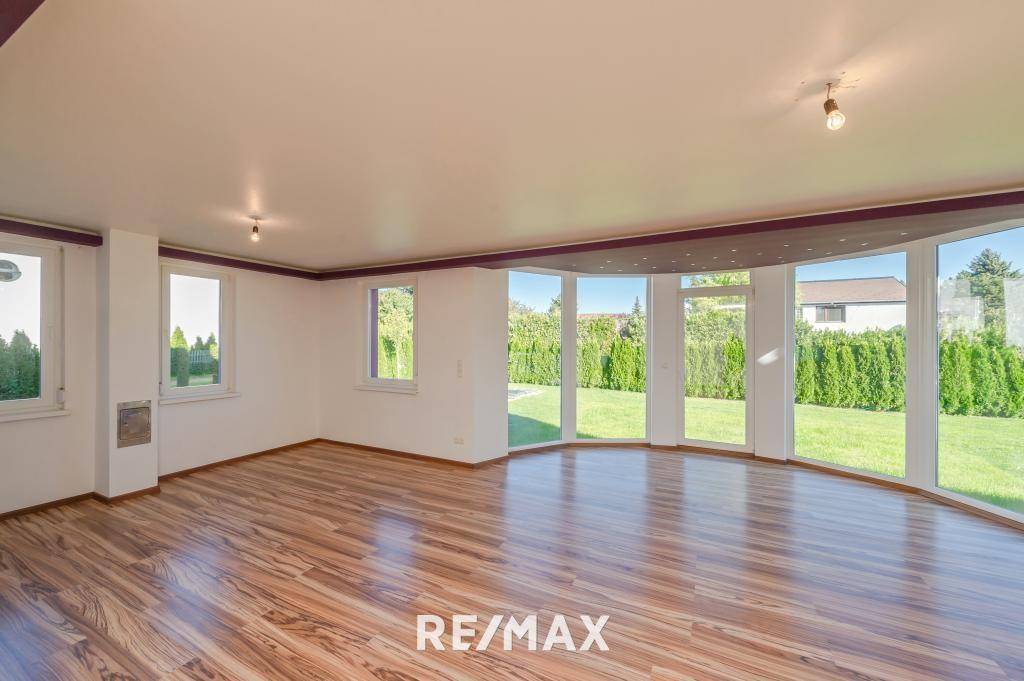 6 Zimmer, voll ausgestattete Küche u. wunderschöne Terrasse ! Mitten in einer ruhigen Wohnlage des 22. Bezirks, liegt dieses mit breiter Fensterfront ausgestattete Einfamilienhaus. Eingebettet in einen ca. 520 m² großen Garten, bietet das Objekt alle Attribute, die man für ein idyllisches Familienleben benötigt: 6 Zimmer - Garten - Terrasse - gute Anbindung u. Infrastruktur Aufteilung Erdgeschoß: + Wohnraum mit Küche - ca. 60 m² + Zimmer 1 - ca. 18 m² + Zimmer 2 - ca. 9 m² + Badezimmer mit Wanne - ca. 6 m² + Flur, WC - ca. 13 m² + Vorraum, Abstellraum - ca. 7 m² Aufteilung Obergeschoß: + Zimmer 3 - ca. 19 m² + Zimmer 4 mit Ausgang Terrasse - ca. 22 m² + Zimmer 5 - ca. 8 m² + Badezimmer - ca. 7 m² + Vorraum - ca. 4 m² + Schrankraum, Abstellraum - ca. 5 m² + Terrasse - ca. 42 m² + 3 Autoabstellplätze + Gartenhaus - ca. 3 m² + Keller, Heizraum - ca. 12 m² Die Beheizung erfolgt mittels Gas-Zentralheizung, die über am Dach befindliche Solarzellen eingespeist wird. Die Warmwasserzufuhr erfolgt über einen 500-Liter Speicher. Zur Gartenbewässerung ( Bewässerungsanlage ) wird der hauseigene Brunnen herangezogen. Ausstattung: + Fußbodenheizung, im EG teilweise Heizkörper + Laminatböden, in Küche u. Badezimmer Fliesenböden + Maßküche mit Siemens Geräte + Badezimmer mit Grohe Armaturen + Kanäle für Klimaanlage vorbereitet + Alarmanlage Die öffentliche Anbindung erfolgt über die Buslinie 97A, deren Station nur wenige Meter entfernt liegt, sowie über die U 2, die in ca. 10 min. fußläufig erreichbar ist. Mehrere Einkaufsmöglichkeiten für den täglichen Bedarf befinden sich innerhalb eines Kilometers. Rechtlicher Hinweis: Bei Abschluss eines Kauf- oder Mietvertrages fallen zusätzliche Kosten an! Details entnehmen Sie unserer Nebenkostenübersicht und/oder dem Exposé! Wir informieren Sie darüber, dass wir bei diesem Objekt eine Doppelmaklertätigkeit ausüben (§ 5 Abs. 3 MaklerG). Die Angaben beruhen auf Informationen der Eigentümer und/oder Dritter und sind daher ohne Gewähr. Änderungen vorbehalten! _______________________________________________________________________________________________________________________ STARTEN SIE IHRE SELBSTSTÄNDIGKEIT BEI RE/MAX FIRST Sie interessieren sich für Immobilien, Sie lieben den Kontakt mit Menschen, Sie sind gerne unterwegs und möchten Ihre Karriere mit kurzen Wegen und einer großteils freien Zeiteinteilung verknüpfen? Die klare Nr. 1 der Immobilien-Vermittlung bietet Ihnen den optimalen Rahmen, um Ihre Karriere-Träume zu verwirklichen. Sie haben Interesse? Dann melden Sie sich bei karriere@remax-first.at. Ihr RE/MAX First Team Hietzing