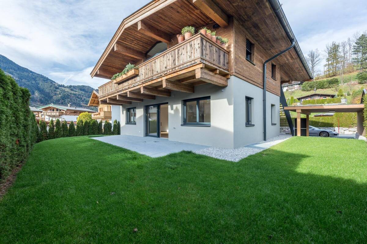 Bei dieser sehr schön gestalteten Gartenwohnung, welche sich über zwei Etagen erstreckt, wurde ein starkes Augenmerk auf eine gute Raumkonzeption in Verbindung mit edlen Materialien und Ausstattungsmerkmalen gelegt. Beim Betreten des Apartments gelangen Sie über ein kleines Podest und über die großzügig angelegte Garderobe in den lichtdurchfluteten Wohn-Essbereich. Großzügige Fensterfronten und Terrassentüren vermitteln das Gefühl mit dem Garten und der Natur direkt verbunden zu sein. Viel Sonnenschein erfreut Sie beim Blick ins Grüne. Der für die Küche im stimmigen Wohnkonzept vorgesehene Bereich besticht ebenfalls durch viel Licht und Helligkeit. Eine offene Anordnung der Küche ist sicherlich die attraktivste Lösung. Das Masterschlafzimmer mit Bad en suite und eigenem Schrankraum vermittelt ein heimeliges und wohliges Gefühl. Das Bad ist sehr hochwertig ausgestattet und die Materialien und Farben ausgesprochen geschickt abgestimmt. Hier finden Sie auch eine Badewanne vor die förmlich zum Relaxen an kalten Wintertagen einlädt. Ein weiteres Schlafzimmer mit Bad und eine Gästetoilette runden das Wohnerlebnis auf dieser Ebene entsprechend ab. Über eine repräsentative Treppe gelangen Sie ins Souterrain. Auch hier gelangt über einen schönen Lichtgraben viel Helligkeit herein. Hier besteht die Möglichkeit für ein drittes Schlafzimmer oder für einen Wellnessbereich, je nach Geschmack und Bedarf Ihrerseits. Ein Bad ist bereits integriert. Ein großes Kellerabteil, ein Technikraum und der Wirtschaftsraum bieten mehr als ausreichenden Stauraum. Die in der gesamten Wohnung verlegten hochwertigen Eichenböden harmonieren perfekt mit den schönen Türen und Fenstern. Die Errichtung eines Kaminofens wäre problemlos umsetzbar. Zur Wohnung selbst gehört eine schöne Steinterrasse und eine knapp 180 Quadratmeter großer Gartenanteil. Ein Carportstellplatz ist ebenfalls im Kaufpreis inkludiert. Das stimmige Wohnkonzept, die hochwertige Ausstattung und die ruhige und sonnige Lage haben hier ein wirklich attraktives Objekt hervorgebracht.