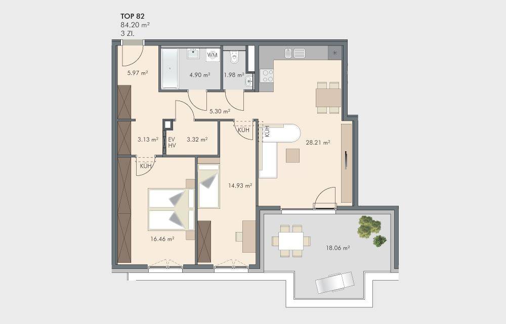 Kirschblüte - Zuhause im Park Gute Lage - Zeit für das Wesentliche - Schönes Leben Beim Kirschblütenpark finden beruhigende Natur und praktische Stadtnähe zueinander. Aus dem obligatorischen Gemeinschaftsgarterl wird hier ein weitläufiger Park. Gute Luft und Ruhe anstatt Verkehrslärm und Feinstaub. Ganz Wien, ganz nah! Kaufen Sie vor der Haustüre bei Billa und Eurospar ein. Ihre Kinder gehen durch den Park zum neuen Bildungscampus in der Attems Gasse. Joggen Sie im eigenen Park oder radeln Sie zur Alten Donau in fünf Minuten! Spazieren Sie zum Einkaufszentrum oder der U1 durch den Park. Falls es regnet nehmen Sie die Straßenbahn 25 oder 26. Freuen Sie sich über eine nette Hausverwaltung und geringe Betriebskosten. Ausstattungshighlights: •großzügige Balkone und Terrassen •Raumhöhen von ca. 2,60 Metern •Parkettböden und Feinsteinzeug •Rollläden überall elektrisch bedienbar •Fußbodenheizung •Videogegensprechanlage •Zustellboxen von RENZ für Pakete und Lieferservices Großzügige Garagenplätze um 28.000 EUR Möglichkeit zur Anbringung von E-Ladesystemen in der Tiefgarage (Stromtankstelle) Baubeginn Sommer 2019 Fertigstellung voraussichtlich Ende 2021 Dieses sowie viele weitere Objekte finden Sie auch hier: www.zima.at/wohnen/wien/kirschbluete/