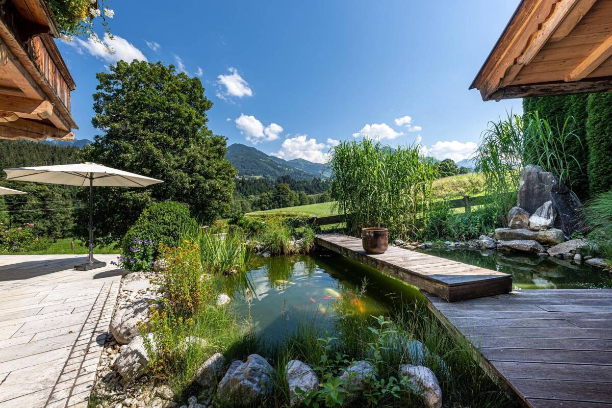Diese exklusive Immobilie befindet sich in einer außergewöhnlichen Ruhelage, zwischen Kitzbühel und Aurach. Die ruhige und private Lage wird von idyllischen Grasweiden und einer traumhaften Aussicht auf die Südberge begleitet. Eine Wohn-/Nutzfläche von 501 m² wurde auf zwei Ebene aufgeteilt und präsentiert sich in der beliebten Tiroler Landhausoptik. Drei Schlafzimmer und drei Badezimmer, eine davon mit Sauna, ermöglichen das Einstellen großzügiger Betten und Kleiderschränken. Dieser exklusive Landhausanteil zeichnet sich neben seiner einmaligen Lage auch durch eine hochwertige Einrichtung aus: massive Holzböden, stilvolle Einbauten und großzügige Räumlichkeiten. Darüberhinaus überzeugen die gemütliche Bibliothek und der offene Wohnbereich, mit angrenzender Landhausküche. Mehrere Kamine tragen zum gemütlichen Ambiente bei. Das Erdgeschoss sowie das vollwertige Souterrain haben einen privaten Zugang auf die sonnige Terrasse und zum pflegeleichten Garten, auf welchem Sie absolute Privatsphäre auch vom zweiten Hausanteil haben. Der gesamte Terrassenbereich mit 170 m² bietet reichlich Platz für einen Grill und Gartenmöbel. Ein „Koi Teich/Badeteich“ rundet das Bild eines idyllischen Gartens ab. Ein Personenaufzug verbindet beide Etagen des Hausanteils miteinander. Abgerundet wird dieses einmalige Angebot durch eine Doppelgarage und zwei Stellplätze im Freien. Short Cuts: Wohn-/Nutzfläche 501 m², Balkon- und Terrassenfläche 170 m², Schlafzimmer 3, Badezimmer 3, einmalige Ruhelage mit Bergblick, einfache Erreichbarkeit des Skigebietes Jochbergs, Loipe am Haus - Baufeldabfahrt bis zur Terrasse möglich, Nähe zum Golfplatz Eichenheim, privater Garten mit Koi Teich/Badeteich, garantierte Privatsphäre, stilvoller Landhausstil, eigene Bibliothek/Büro, Sauna im Master-Badezimmer, Personenaufzug, zentrale Staubsaugeranlage und Luftbefeuchtungsanlage, Doppelgarage und zwei Außenabstellplätze, Kaufpreis € 3.495.000,-, HWB 64 fGEE 0,84 Es gelten unsere Allgemeinen Geschäftsbedingungen.