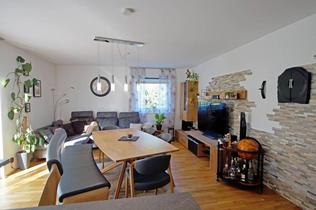 Auf einem sonnigen Hochplateau über der Bezirkshauptstadt Kufstein liegt die idyllische Ortschaft Schwoich umrahmt von einer traumhaften Bergkulisse. In einem überschaubaren Siedlungsgebiet, zentral gelegen, befindet sich dieses 2016 erbaute Mehrparteienhaus. Die charmante und moderne Wohnung ist im 2. Obergeschoss untergebracht. Die Gemeinde verfügt über eine gute Infrastruktur und die Festungsstadt ist in wenigen Fahrminuten erreicht. Ein Personenaufzug erschließt das Gebäude barrierefrei. Auf einer Wohn-/ Nutzfläche von ca. 100 m² bietet die Immobilie eine durchdachte Raumaufteilung mit einer gehobenen Grundausstattung wie elektrische Rollläden, über Gas beheizte Fußbodenheizung und Holzdielenböden. Über den geräumigen Flur, welcher ausreichend Platz für Einbauschränke und eine Garderobe bereit hält, gelangen Sie in den offenen Wohn-/Essbereich. Hier finden sie eine hochwertige Einbauküche mit pflegeleichtem Fliesenboden und anschließender Speisekammer vor. Die Steinfliesen an der Wand im Wohnzimmer verleihen eine angenehme Wohlfühlatmosphäre. Von hier gelangen Sie auch auf den ca. 30 m² großen, sonnigen Balkon in südlicher, südöstlicher und westlicher Ausrichtung mit Blick zum Pendling und dem Scheffauer sowie die umliegende Bergwelt. Die drei Schlafräumlichkeiten des Objekts sind alle nahezu gleich groß. Das moderne Badezimmer wurde mit einer Dusche und einer Wanne ausgestattet. Eine separater Toilette rundet das Raumkonzept ab. Im Kaufpreis sind ein separates Kellerabteil und ein Tiefgaragenstellplatz enthalten. Short Cuts: Wohn-/Nutzfläche 101,39 m², Balkonfläche 27,77 m², Schlafzimmer 3, Badezimmer 1, südliche, südöstliche und westliche Ausrichtung, Blick zum Pendling und zum Scheffauer, durchdachte Raumaufteilung , gehobene Grundausstattung, elektrische Rollläden, hochwertige, vollausgestattete Einbauküche, modernes Badezimmer mit Dusche und Wanne, optisch ansprechende Steinwand im Wohnzimmer, Fußbodenheizung und Holzdielenboden, barrierefrei - Personenaufzug, separates Kellerabteil (ca. 10 m²), ein Tiefgaragenabstellplatz, Kaufpreis € 449.500,-, HWB 30,90 fGEE 0,64 Es gelten unsere Allgemeinen Geschäftsbedingungen.
