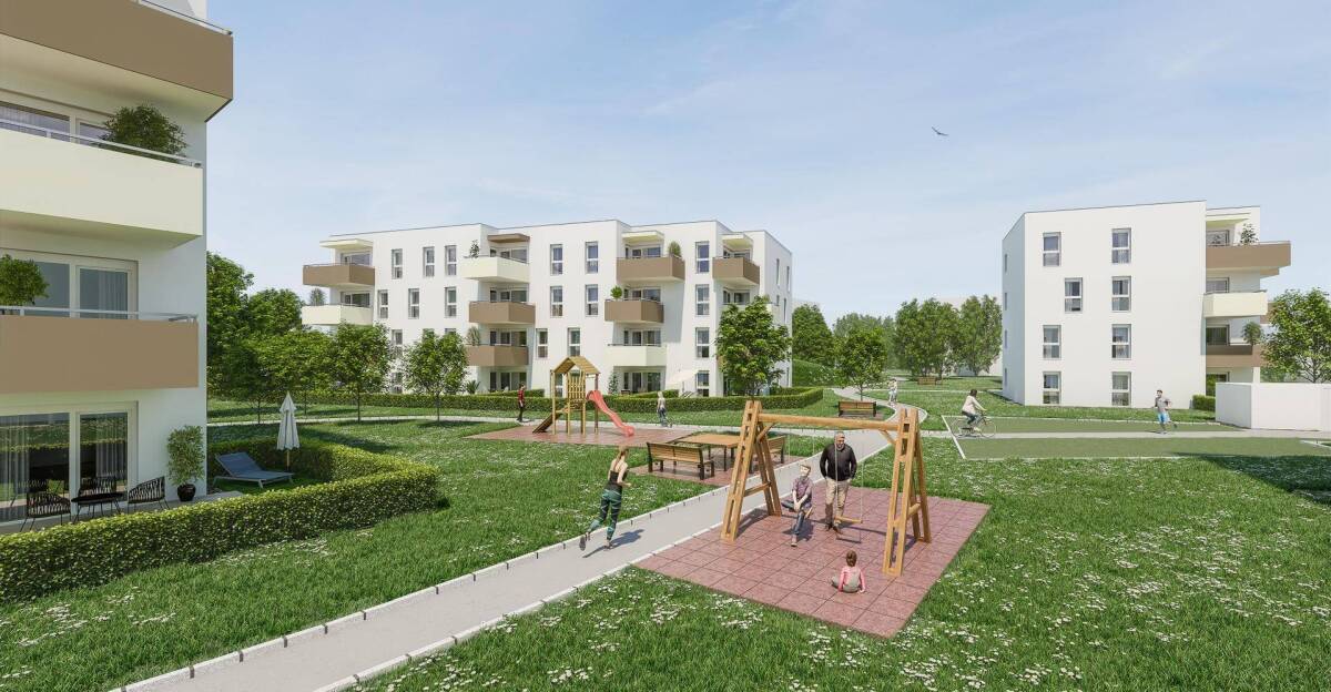 In Mattighofen plant die OÖ Wohnbau insgesamt 112 Miet- und Eigentumswohnungen. Die Anlage liegt in Zentrumsnähe und ist auch fußläufig gut erreichbar. Im dritten Bauabschnitt werden 32 Eigentumswohnungen errichtet. Es werden 2- und 3- Zimmer Wohnungen mit ca. 54 m² und ca. 74 m² Wohnfläche errichtet. Die Gesamtanlage wird unterkellert und jeder Wohnung wird mindestens ein Tiefgaragenabstellplatz zugeteilt. Im Kellergeschoß befinden sich ein Fahrradabstellraum und ein Wasch- und Trockenraum. Die Erdgeschoßwohnungen erhalten einen eigenen Gartenanteil und den Wohnungen in den Obergeschoßen erhalten Loggien. Die Anlage wird mit einer großzügigen Grünanlage ausgestattet. Jedes Stockwerk ist barrierefrei mit Lift erreichbar. Vor der Wohnungsanlage werden Besucherparkplätze errichtet.