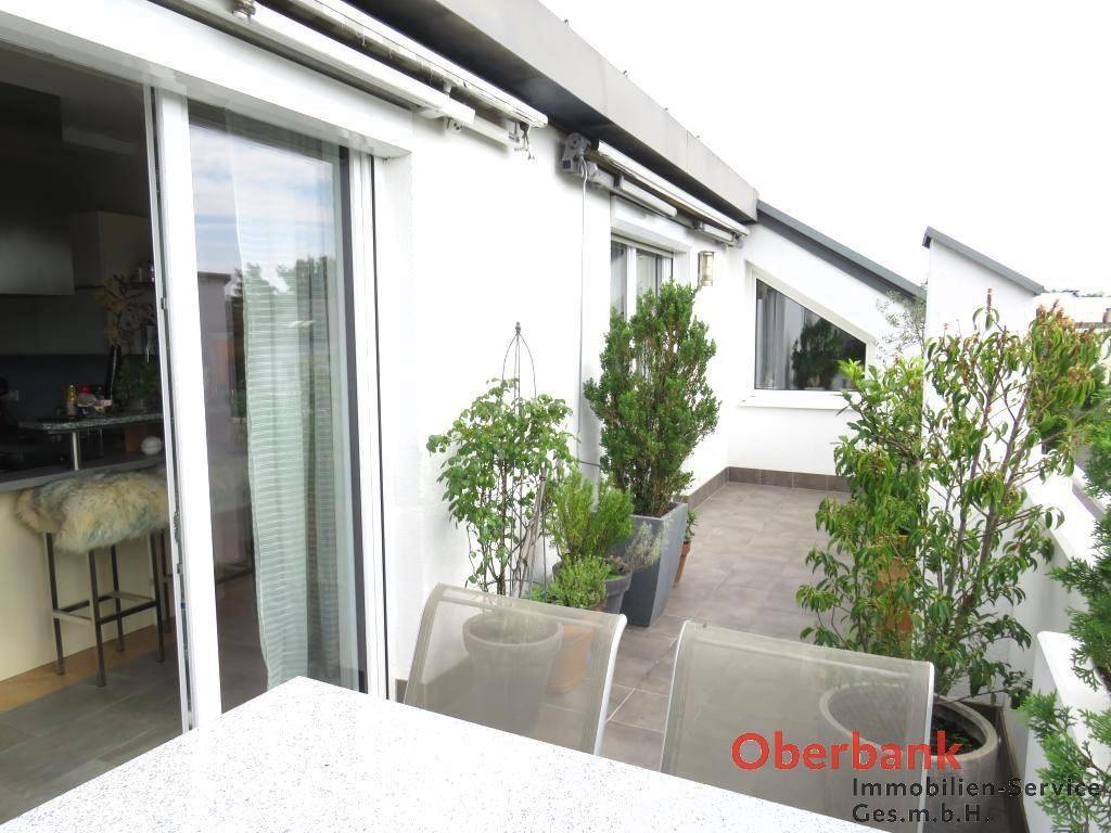 Zum Verkauf gelangt eine hochwertig ausgestattete, lichtdurchflutete und großzügige ca. 175m² große Wohnung inkl. zwei Terrassen in einer absolut ruhigen Siedlungslage. Die im Dachgeschoss situierte Wohnung verfügt über eine ausgesprochen großzügige Wohnfläche und wurde von den aktuellen Eigentümern hochwertig ausgestattet und präsentiert sich in sehr gutem Zustand. Hier haben Sie die Möglichkeit ruhig zu wohnen und doch gleich im Zentrum von Linz zu sein. Besondere Highlights der Wohnung sind neben der ruhigen Lage die sonnig ausgerichteten Dachterrassen, der offene Wohn-Essbereich sowie die Nähe zum Stadtzentrum. Raumaufteilung: Die Räumlichkeiten sind großzügig angelegt, vor allem der Wohn - Ess- Loungebereich ist sehr offen gestaltet. Die Liegenschaft befindet sich im 2. Stock ohne Lift, wird inkl. Einbauküche verkauft und unterteilt sich in einen großzügigen Wohn-Essbereich mit direktem Zugang zu den Dachterrassen, ein weiteres großzügiges Wohnzimmer, ein Kinderzimmer mit Schrankraum, ein Gästezimmer, ein Schlafzimmer mit Einbauschrank, ein Badezimmer mit Badewanne und WC, einen Abstellraum, einen Vorraum und ein Gäste-Badezimmer mit Dusche und WC. Der Innenbereich ist mit moderner Technik, einem klassischem Fischgrätparkettboden und einem Kaminofen ausgestattet, große Fensterfronten sorgen dafür, dass die Wohnung warm und hell wirkt. Von den beiden Terrassen inkl. Sonnenmarkise (11m² Südseite, 16m² Westseite) genießen Sie den herrlichen Rundumblick ins Grüne. Weiters verfügt die Wohnung über elektrische Rollläden an den Fenstern, eine 3 fach-Verglasung an den Internorm bzw. Actual Fenstern sowie eine breite Glasschiebetüre vom Essbereich zum Vorzimmer. Die drei Doppeltüren auf die Terrassenflächen wurden im Jahr 2018 erneuert. Eines der beiden Bäder ist mit einer hochwertigen Dampfdusche und Fliesen in Marmoroptik ausgestattet, das zweite Badezimmer ist mit einer Badewanne und Villeroy&Boch Fliesen ausgestattet. Die moderne DAN - Einbauküche inkl. Bosch Einbaugeräten sowie diverse Einbauschränke, zwei nebeneinander liegende Kellerabteile sowie zwei zur Wohnung zugeteilte PKW Absellplätze sind bereits im Kaufpreis inkludiert und runden das Angebot ab. Die auf einer Ebene liegende Wohnung wurde vom Eigentümer von zwei getrennten Wohneinheiten zu einer traumhaft großzügigen Wohnung zusammengelegt und zu einer Wohlfühloase umgestaltet. Lage: Die vorhandene Infrastruktur könnte kaum besser sein. So erreichen Sie in wenigen Minuten zu Fuß die öffentlichen Verkehrsmittel (Bus) oder auch die umliegenden Nahversorger und Supermärkte (Infracenter, Maximarkt, Interspar, Billa). Im unmittelbaren Umfeld der Wohnung befinden sich vorwiegend Einfamilienhäuser mit schönen Gärten und ein praktischer Arzt. Die Bushaltestelle der Linz Linien ist ca. 3 Minuten entfernt. Das Zentrum von Linz, Traun und die nahe Plus-City können bequem mit öffentlichen Verkehrsmitteln oder auch mit dem Auto erreicht werden. In der Umgebung stehen Ihnen genügend Freizeitmöglichkeiten in der Natur, diverse Grünflächen sowie mehrere Nahversorger zur Verfügung. Ein Energieausweis mit einem HWB von 84kWh/m²a ist vorhanden. Für nähere Informationen steht Ihnen unser Herr Gansterer Gerald unter 0664805565689 jederzeit und unverbindlich zur VerfügungAngaben gemäß gesetzlichem Erfordernis: Heizwärmebedarf: 84.0 kWh/(m²a) Klasse Heizwärmebedarf: C