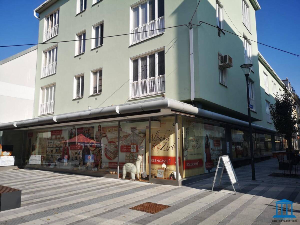 Obj. Nr.: 1537 / 1840Ein großzügiges Eckgeschäftslokal in einer der besten Lagen in Wiener Neustadt steht nunmehr in der stark frequentieren und sehr beliebten Fußgeherzone Wiener Straße zur Anmietung frei und befand sich davor darin ein bekanntes Modelabel.Die Räumlichkeiten teilen sich in drei Etagen auf (individuell anmietbar) und verfügen insgesamt über eine Nutzfläche von ca. 412,47 m², welche unter Anderem eine großzügige, barrierefrei und über ein riesiges Glasportal zugängliche, Verkaufsfläche von ca. 149,76 m² (bei einer Raumhöhe von ca. 3,23 m) zzgl. einem ca. 18,15 m² großen Büro mit zwei Fenstern inkl. einem integrierten Stiegenaufgang ins 1. Obergeschoss - & Abgang in den Keller bietet.Zusätzlich bestehen im Erdgeschoss ein wertvolles ca. 22,21 m² großes, in die Fußgeherzone westseitig ausgerichtetes, Schaufenster sowie weitere große, in die Seitengasse südlich gelegene, Schaufensterflächen mit großartigen Möglichkeiten zur idealen Produkt- bzw. Dienstleistungspräsentation.Im oberen Geschoss, welches zusätzlich über ein allgemeines Stiegenhaus mit einem separaten Eingang erreichbar ist, steht eine weitere Fläche von ca. 174,98 m² zur Verfügung, von welcher sich, auf Grund der vielen Fensterfronten, ca. 146,19 m² sehr gut für Bürozwecke, ob mit einem großen Teambüro oder mehreren, kleineren Büros, nutzen lassen.Die restlichen ca. 27,71 m² beziehen sich auf einen großzügigen Technikraum für etwaige Klima- und Heizanlagen etc.! Weiters besteht im Obergeschoss ein zentrales WC mit der Option auf Erweiterung.Natürlich sind die Räumlichkeiten mit einer Fläche von ca. 146,19 m² (ohne Technikraum) im Obergeschoss (bei einer Raumhöhe von ca. 2,55 m) auch anderweitig, zum Beispiel als weitere Verkaufs- und / oder Lagerfläche etc., nutzbar und erstrecken sich die Lagermöglichkeiten sogar bis ins Kellergeschoss, welches über eine zusätzliche Fläche von ca. 46,87 m² (bei einer Raumhöhe von ca. 2,15 m) verfügt.Die aktuellen Gegebenheiten erfordern sicherlich eine Art von Adaptierung bzw. Renovierung (siehe Fotos), jedoch steht dies dem neuen Mieter nach Rücksprache und Vereinbarung mit dem Vermieter frei und kann somit der Kreativität freien Lauf gelassen werden. Somit stehen einer Entfaltung sowie Umsetzung diverser Ideen alle Türen offen und kann dieses Objekt sicherlich danach perfekt adaptiert werden.Das sehr große, zum Haupt- und Domplatz bzw. südwestseitig ausgerichtete, Eckgeschäftsportal erlaubt auf Grund seines guten Standorts, zum Beispiel, auch einen gemütlichen Gastgarten und das mitten in der Fußgeherzone.Eine Anmietung ist vorab befristet angedacht, wobei die Dauer der Befristung zumindest fünf Jahre beträgt bzw. je nach Investitionsvolumen selbstverständlich verhandelbar und optional mit Verlängerung ist.Parkflächen stehen überall in der näheren Umgebung zur Verfügung (Kurzparkzonen-Pickerl). Optional sind sogar Garagen bzw. auch freie Parkflächen ganz in der Nähe und je nach Verfügbarkeit gegen Aufpreis in Höhe von ab ca. € 70,-- bis € 90,-- pro Monat anmietbar.Der nahe gelegene Domplatz sowie der St. Peter an der Sperr-Kirchenplatz sind auf Grund der zahlreichen, öffentlichen Parkplätze das Tüpfelchen auf dem I. Der Bahnhof ist in ca. 5-10 Gehminuten erreichbar.Mtl. Miete (Erdgeschoss - ca. 190,12 m²): € 1.578,00 zzgl. BK € 750,--, zzgl. MwSt., gesamt sohin € 2.793,60Mtl. Miete (gesamt - EG, 1. OG, Keller - ca. 412,47 m²): € 2.545,22 zzgl. BK € 1.203,41, zzgl. MwSt., gesamt sohin € 4.498,35Kaution: 3 Bruttomonatsmieten / BankgarantieMietvertragsabwicklungshonorar: € 370,--Adaptierungen: vermieterseits nach Vereinbarung eventuell möglich! (in Standardausstattung)fixe Parkplätze / Garagen: gegen Aufpreis (je nach Verfügbarkeit)Folgende COVID-19 Regeln sind bei Besichtigungen einzuhalten:- Mund-Nasen-Schutz Pflicht- kontaktlose Besichtigung (nichts berühren)Weiters möchten wir darauf hinweisen, dass Besichtigungen ausnahmslos abgebrochen werden, falls Sie COVID-19 Krankheitssymptome aufweisen.Infrastruktur / EntfernungenGesundheit Arzt <500m Apotheke <500m Klinik <7.500m Krankenhaus <500m Kinder & Schulen Schule <500m Kindergarten <500m Universität <3.000m Höhere Schule <1.000m Nahversorgung Supermarkt <500m Bäckerei <500m Einkaufszentrum <1.500m Sonstige Bank <500m Geldautomat <500m Polizei <500m Post <1.000m Verkehr Bus <500m Bahnhof <1.000m Autobahnanschluss <2.500m Flughafen <2.500m Angaben Entfernung Luftlinie / Quelle: OpenStreetMap