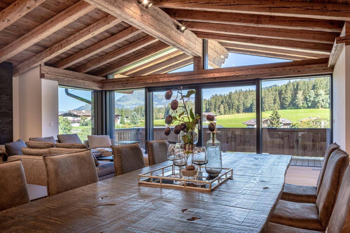 Die hier angebotenen Luxuschalets in unterschiedlichen Größen wurden planerisch äußerst geschickt in ein großzügiges Hanggrundstück integriert. Aktuell stehen nur noch die Top 2 zum Preis von 4.200.000 Mio Euro und die Top 4 um 4.650.000 Euro zum Verkauf. Die Fassade weist typische Kitzbüheler Stilelemente wie hochwertiges Altholz, raumhohe Fensterfronten, sehr aufwendige Spachtelungen, Metallgeländer- und Verkleidungen, Natursteine und mit Kies bedeckte Dächer auf. Die reinen Wohnflächen dieser Einheit beträgt 287 m². Sämtliche Chalets verfügen in den oberen Ebenen über offene Wohn- / Essbereiche mit imposanten Sichtdachstühlen in Altholz und in den darunter liegenden Etagen über die Schlafbereiche und Wellnessoasen sowie in den Eingangsebenen über großzügige Foyers mit edlen Garderoben. Die Raumaufteilungen, Größen und Schnitte werden aufgrund ihrer Unterschiedlichkeit jedem Ihrer Ansprüche gerecht und bieten viel Platz für Ihre persönliche Verwirklichung. Je nach Größe verfügen diese Immobilien über drei bis vier Schlafzimmer mit luxuriösen Bädern en suite, zum Teil Büros, einen eigenen Wellnessbereich mit Altholzsauna sowie diverse Nebenräume. Gehen Sie davon aus, dass sämtliche Chalets auch im Innenbereich nur mit den hochwertigsten Materialen ausgestattet wurden und keine Wünsche übrig lassen. Auch bei der technischen Ausstattung wurde sehr viel Wert auf beste Qualität gelegt. Das gesamte Wohnhaus ist mit einem BUS-System, mehreren Aufzügen, elektrischen Rollläden, 3-fach verglasten Holz- / Alufenstern, Lichtdeckensystemen, Wohnraumbelüftung, separate Gasheizungen, Universumsteuerung etc. ausgestattet. Abschließend sollte die absolut beeindruckende Garage mit den überdimensionierten Stellplatzgrößen und dem ansprechenden Beleuchtungssystem erwähnt bleiben.