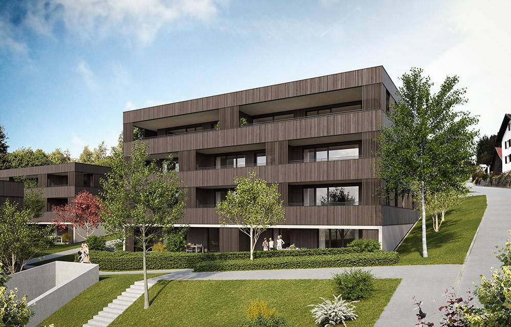 ÜBER DEN DÄCHERN VON FELDKIRCH Mit dem Neubauprojekt „Am Schlosshang“ entsteht in Feldkirch ein besonderes Ensemble, bestehend aus sechs Baukörpern, welche von weiten Grünbereichen umschlossen sind. Die Architektur harmoniert mit der natürlichen Steigung des Hangs, deshalb ist die Bebauung auch der Höhe nach ansteigend. In den sechs Häusern werden gesamt 65 Wohnungen errichtet. Die 2- bis 4-Zimmerwohnungen bieten für jede Lebenslage den passenden Grundriss. Die Wohnungen verfügen über eine optimale Ausrichtung nach Süden. Durch die Anhöhe bieten die Außenbereiche eine wunderschöne Aussicht über die Dächer von Feldkirch bis hin zur Schweizer Bergwelt. Lichtdurchflutete Wohnraumgestaltung, großzügige Terrassen und grüne Privatgärten sorgen für entspannende Momente. Zusätzlich wird im Zentrum der Wohnanlage ein Quartier-Treffpunkt errichtet, welcher gleichzeitig auch Raum für einen Kinder- und Jugendspielplatz bietet. Zwei getrennte Tiefgaragen, Personenlifte sowie eine barrierefreie Bauweise runden das Konzept für höchsten Wohnkomfort perfekt ab. EINE STADT MIT GESCHICHTE Kurz vor dem Feldkircher Zentrum liegt zwischen Ardetzenberg und Tilliswald der Stadtteil Levis. Hier entsteht das Neubauprojekt in Sichtweite zum bekannten „Schloss Amberg“. In nur wenigen Minuten erreichen Sie zu Fuß die Geschäfte des täglichen Bedarfs. Der Feldkircher Bahnhof befindet sich in angenehmer Laufnähe. Das Bus und Bahnnetz garantiert uneingeschränkte Mobilität. So kann auch das Stadtzentrum von Feldkirch bequem erreicht werden. Feldkirch ist eine Bildungs- und Kulturstadt. Über die Kindergärten und Mittelschulen hinaus gibt es einige höher bildende Schulen wie die Bundeshandelsakademie, verschiedene Bundesrealgymnasien und die Pädagogische Hochschule. Alle Betreuungs- oder Bildungseinrichtungen liegen in angenehmer Entfernung zu Ihrem neuen Zuhause. Zudem ermöglichen die öffentlichen Verkehrsmittel eine kurze Anreisezeit. Die geschichtsträchtige, mittelalterliche Altstadt bietet das ganze Jahr verschiedenste Veranstaltungen – Genussevents wie die Vinobile, das Familienfestival „Gaukler Fest“ oder das namhafte Poolbar Festival. In der Innenstadt finden sich eine große Auswahl an hervorragenden Restaurants und Bars, zudem lockt die Innenstadt mit einer Vielzahl von Einkaufsmöglichkeiten sowie Obst- und Gemüsemärkten, welche regionale Qualitätsprodukte anbieten.