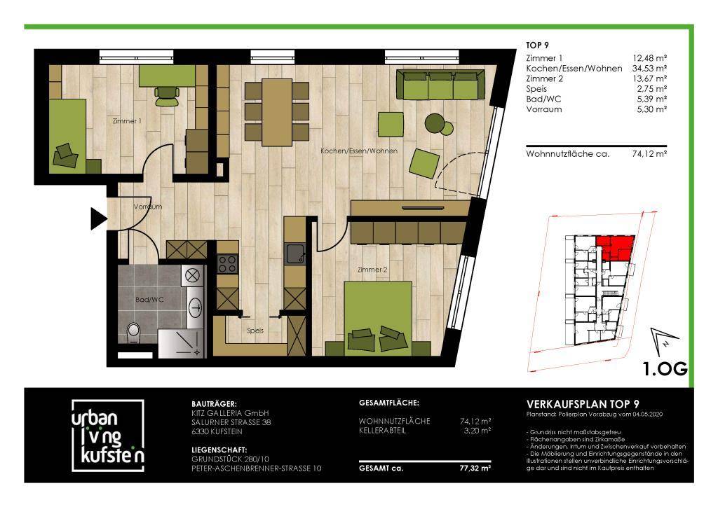 URBAN LIVING KUFSTEIN - noch sind attraktive Einheiten verfügbar! • Provisionsfreier Kauf direkt vom Bauträger aus der Region • Beste Bauqualität und hoher Nutzerkomfort • Attraktiv sowohl für Eigennutzer als auch Anleger Weitere Eckdaten: • 24 Wohneinheiten mit hochwertiger Ausstattung • Zentrale Stadtlage • Nahversorgung in unmittelbarer Nähe • Anbindung an den öffentlichen Verkehr • Vielfältiger Wohnungsmix zur Abdeckung verschiedenster Bedürfnisse • Traumhafter Festungsblick aus mehreren Einheiten weitere Infos: www.urban-living.tirol Ansprechpartner: Florian Kirchmair Tel.: +43.(0)664.20.30.403 Mail: florian@cgo.at Anmerkung: Ausstattung- und Möblierungsvorschläge in den Visualisierungen dienen zur besseren Illustration, sind jedoch nicht Bestandteil der Wohnungen und besteht hierauf keinerlei Rechtsanspruch. Basis für den Leistungsumfang bildet die jeweilige Bau- und Ausstattungsbeschreibung.Angaben gemäß gesetzlichem Erfordernis: Heizwärmebedarf: 28.9 kWh/(m²a)