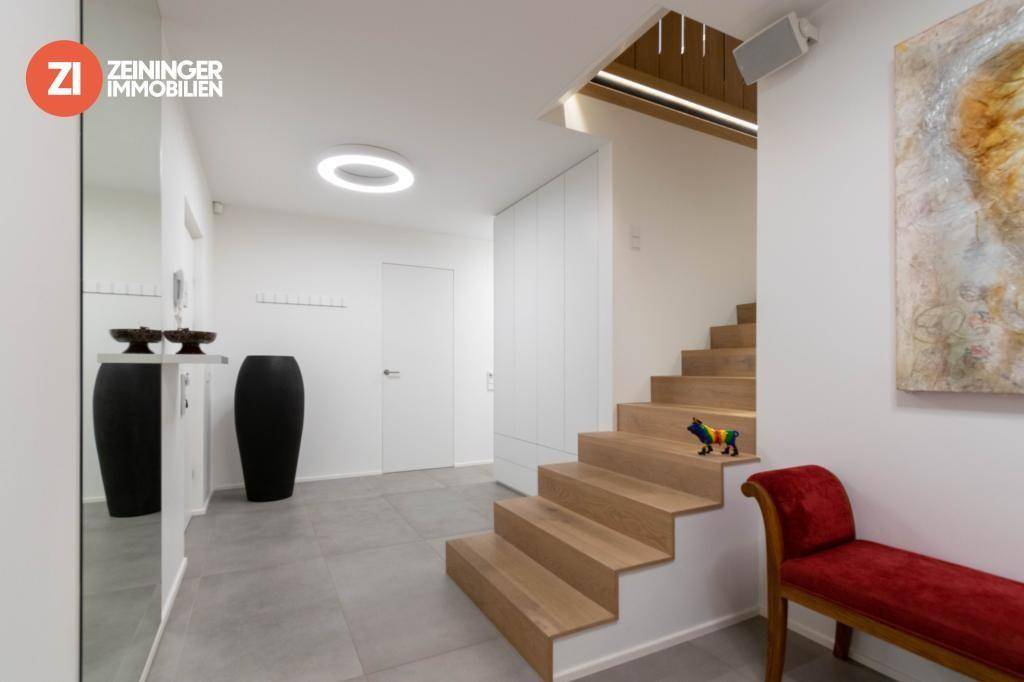 Hier bedeutet Wohnen pure Lust am Leben! Sie residieren in einem Penthouse auf zwei Ebenen und geniessen den herrlichen Ausblick auf den Linzer Dom. Sie erreichen die erste Wohnebene im 2. OG mit dem Lift. Auf dieser Ebene finden Sie die Schlafräume, das Ankleidezimmer und das Badezimmer mit einer Dampfdusche. Durch das Schlafzimmer (ca. 25m²) gelangen Sie auf eine Loggia, die den Ausblick ins Grüne freigibt. Der Weg in die zweite Ebene führt nach oben ins Dachgeschoss, wo Design und Wohnkomfort eine harmonische Symbiose ergeben. Stilvolle Eleganz fesselt den Betrachter und lässt Menschen, für die Wohnen Lebensfreude bedeutet, Glück empfinden. Eine Designer-Küche in weiss mit exklusiven Gaggenau-Geräten verführt zu kulinarischen Höchstleistungen. Ebenso der integrierte Weinschrank und die komfortable Kochinsel. Ihre Gäste werden sich fühlen wie im Himmel, wenn sie hier empfangen werden. Durch das Wohnatelier mit ca. 70 m² gelangt man auf die Dachterrasse, die den Ausblick auf die Silhouette der Stadt und den Neuen Dom freigibt. Hier können Sie im Whirlpool die Abendsonne geniessen und ein bisschen Urlaubsfeeling in den Alltag holen. Highlights des Penthouses: + Architektenplanung + Hochwertige Tischlereinbauten + Bulthaup-Küche mit Gaggenau-Geräten + Trapa-Böden + Italienische Designarmaturen + Bus-System von Loxone + Whirlpool auf der Dachterrasse + Klimaanlage Zum Penthouse gehören auch noch drei Tiefgaragen-Plätze und ein Kellerabteil. Die Lage der Penthouse-Wohnung ist sehr stadtnahe und doch im Grünen. Fußläufig sind Sie in 5 Minuten an der Promenade, Landhaus und Landestheater. Für sportliche Aktivitäten sind Sie sofort im Grünen des Römerberges. Bus-und Straßenbahn sind in unmittelbarer Nähe.