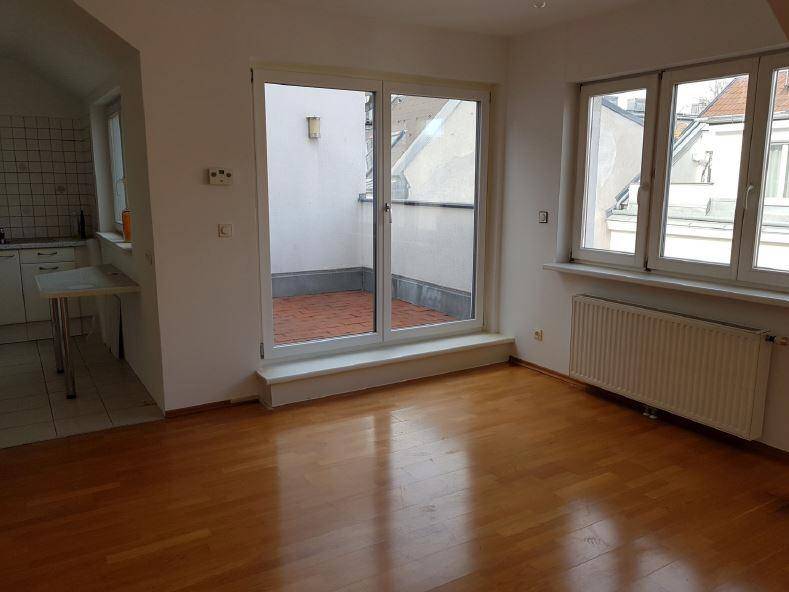 Diese hübsche Dachgeschoß-Wohnung liegt direkt auf der Landstraßer Hauptstraße mit zahlreichen Geschäften und Lokalen in der Umgebung und doch sehr ruhig. Sie besteht aus einem großzügigen Wohnraum mit Zugang auf die Terrasse und Zugang zur Küche. Weiters aus einem Schlafzimmer mit angrenzendem Bad mit Badewanne sowie einem Schrankraum. Vorraum, WC und Kellerabteil gehören ebenso zur Wohnung. Die Zimmer sind mit Parkettböden und die Naßräume mit Fliesen ausgestattet. Die Wohnung wird vorerst befristet auf 5 Jahre vermietet. Wir freuen uns auf einen Besichtigungstermin mit Ihnen!