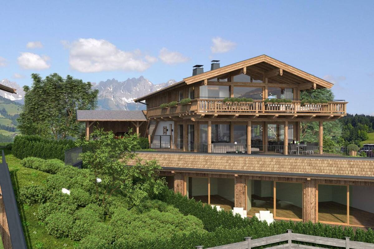 In sonniger Lage mit herrlichem Blick auf das Hahnenkammgebiet, das Kitzbüheler Horn und den Wilden Kaiser werden derzeit zwei exklusive Wohnungen errichtet. Das Haus wird im beliebten Chalet-Stil gehalten mit Altholz an der Fassade und im Innenausbau, Böden aus Landhausdielen und Naturstein, handgefertigten Einbauten, umfassend ausgestatteten Küchen und individuell dazu ausgewähltem, hochwertigem Mobiliar in allen Räumen, sodass man sofort einziehen und sich wohlfühlen kann. Die großen Fensterflächen sorgen für lichtdurchflutete Bereiche und viel Lebensqualität.Top 1 umfasst das gesamte Erdgeschoss sowie einen Teil vom Untergeschoss, das mit einer Innentreppe verbunden und zusätzlich direkt auch von der Garage begehbar ist. Gesäumt wird diese Einheit von herrlichen Sonnenterrassen und einem schön angelegten Garten. Das Raumkonzept bietet einen offenen Wohn-Essbereich mit Kamin und Küche, Garderobe, Gästetoilette, drei Schlafzimmer jeweils mit Bad en suite (ein viertes wäre möglich), Wellness mit Sauna, Fitness und Relaxzone, Weinkeller, Wirtschaftsraum, 3 PKW-Stellplätze in der Tiefgarage sowie einen Carport-Platz im Freien.Bei der genialen Planung des Hauses wurde großes Augenmerk auf höchste Privatsphäre gelegt, so ist jede Wohnung direkt von außen mit einem eigenen Zugang erreichbar.Alternativ kann der Wunsch nach einem Penthouse mit Top 2 erfüllt werden - es umfasst das gesamte Dachgeschoss sowie einen Teil vom Untergeschoss, das mit einem privaten Lift verbunden und zusätzlich direkt auch von der Garage begehbar ist. Gesäumt wird diese Einheit von herrlichen Sonnenbalkonen und einer breiten Südterrasse. Das Raumkonzept bietet einen offenen Wohn-Essbereich mit Kamin und Küche samt Bartheke, Garderobe, Gästetoilette, drei Schlafzimmer jeweils mit Bad en suite (ein viertes wäre möglich), Wellness mit Sauna, Fitness und Relaxzone, Weinkeller, Wirtschaftsraum, 3 PKW-Stellplätze in der Tiefgarage sowie einen Carport-Platz im Freien. Wfl. ca. 244m² Kaufpreis EUR 4,450.000Hinweis gemäß Energieausweisvorlagegesetz: Ein Energieausweis wurde vom Eigentümer bzw. Verkäufer, nach unserer Aufklärung über die ab 1.12.2012 geltende generelle Vorlagepflicht, sowie Aufforderung zu seiner Erstellung noch nicht vorgelegt. Daher gilt zumindest eine dem Alter und der Art des Gebäudes entsprechende Gesamtenergieeffizienz als vereinbart. Wir übernehmen keinerlei Gewähr oder Haftung für die tatsächliche Energieeffizienz der angebotenen Immobilie.Infrastruktur / EntfernungenGesundheit Arzt <1.500m Apotheke <4.000m Krankenhaus <8.000m Kinder & Schulen Schule <4.000m Kindergarten <4.500m Nahversorgung Supermarkt <3.500m Bäckerei <3.500m Sonstige Bank <3.500m Geldautomat <3.500m Post <4.000m Polizei <4.000m Verkehr Bus <1.000m Bahnhof <4.500m Flughafen <9.500m Angaben Entfernung Luftlinie / Quelle: OpenStreetMap
