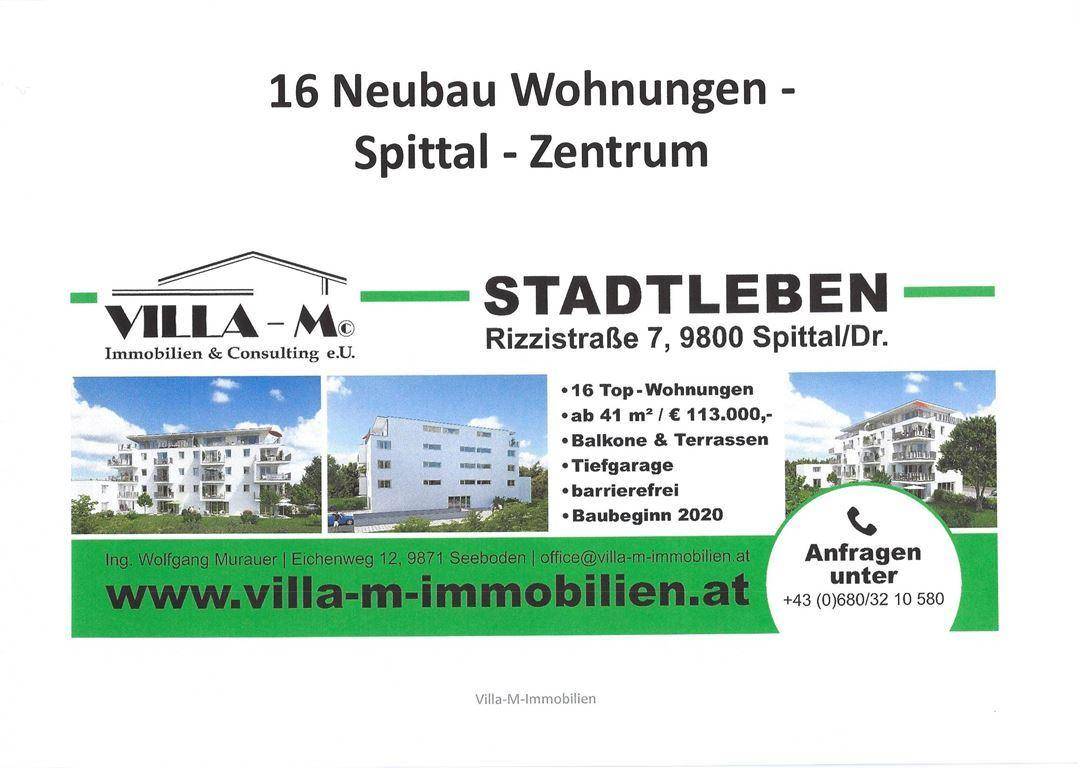 Projekt: Am Projektstandort Rizzistraße Nr. 7 in 9800 Spittal an der Drau werden die Bestandsobjekte am Grundstück abgerissen und ein mehrgeschossiges Wohn- und Geschäftshaus samt Tiefgarage im massiver und moderner Bauweise errichtet. Das Projekt wird als Bauträgerprojekt samt notarieller Abwicklung durchgeführt. Wohnobjekte: Zum Verkauf stehen 14 Wohneinheiten auf 4 Geschossen mit Größen von 43 m² bis 73 m². Sämtliche Wohnungen werden barrierefrei ausgeführt und verfügen über einen mindestens ca. 8 m² großen Südbalkon sowie einem Abstellraum im Keller. Die Wohneinheiten sind derzeit von der Größe sowie der Innenraumaufteilung noch flexibel veränderbar. Baustart/Fertigstellung: Der Baustart ist mit Q4/2020 geplant, die Übergabe der Wohnungen mit Q4/2021. Wohnungen: 1. OGTop 246,1120205-01168,00 € 123 375141 000 € 1. OGTop 343,2720205-01178,00 € 114 625131 000 € 1. OGTop 445,5830205-01188,00 € 128 625147 000 € 1. OGTop 565,3230205-01198,00 € 175 875201 000 € 1. OGTop 643,5820205-01208,00 € 123 375141 000 € 1. OGTop 7 verkauft 2. OGTop 846,1120205-01228,00 € 132 125151 000 € 2. OGTop 943,2720205-01258,00 € 123 375141 000 € 2. OGTop 1045,5820205-01268,00 € 132 125151 000 € 2. OGTop 1165,3230205-01278,00 € 184 625211 000 € 2. OGTop 12 verkauft 2. OGTop 13 verkauft 3. OGTop 14 verkauft 3. OGTop 15 verkauft Der erstgenannte Preis ist der Anlegerpreis (netto)!
