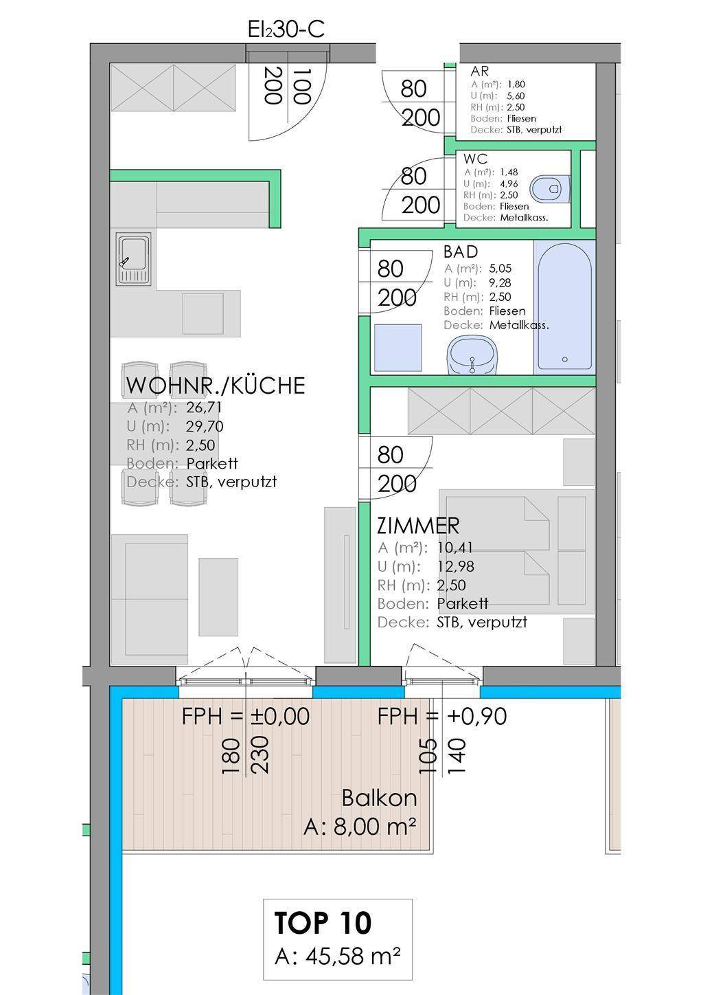 Wohnung Top 10: Die sehr helle und nach Süden ausgerichtete 2 Zimmer Wohnung im 2. Obergeschoss besticht durch ihren sehr gut durchdachten Grundriss. Die Wohnung besteht aus folgenden Räumen: Vorraum, WC, Bad, Abstellraum, Schlafzimmer einem Wohn- Esszimmer samt vorgelagertem Süd Balkon. Projekt: Am Projektstandort Rizzistraße Nr. 7 in 9800 Spittal an der Drau werden die Bestandsobjekte am Grundstück abgerissen und ein mehrgeschossiges Wohn- und Geschäftshaus samt Tiefgarage im massiver und moderner Bauweise errichtet. Das Projekt wird als Bauträgerprojekt samt notarieller Abwicklung durchgeführt. Wohnobjekte: Zum Verkauf stehen 14 Wohneinheiten auf 4 Geschossen mit Größen von 43 m² bis 73 m². Sämtliche Wohnungen werden barrierefrei ausgeführt und verfügen über einen mindestens ca. 8 m² großen Südbalkon sowie einem Abstellraum im Keller. Die Wohneinheiten sind derzeit von der Größe sowie der Innenraumaufteilung noch flexibel veränderbar. Baustart/Fertigstellung: Der Baustart ist mit Q4/2020 geplant, die Übergabe der Wohnungen mit Q4/2021.