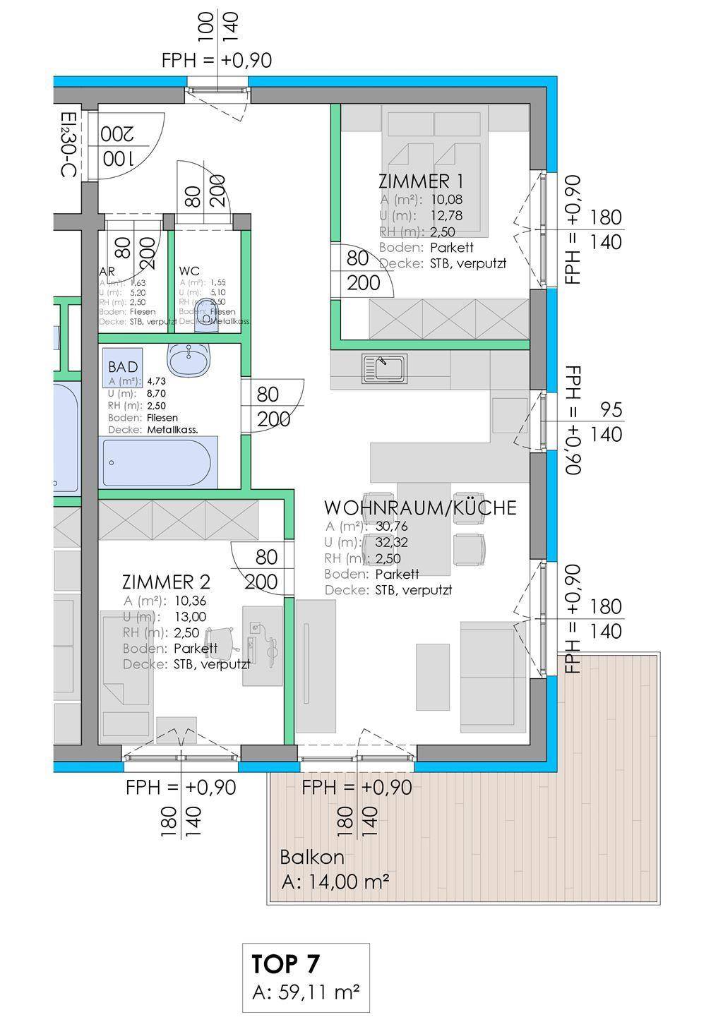 Wohnung Top 7: Die sehr helle, nach Süden und Westen ausgerichtete 3 Zimmer Wohnung besticht durch ihren gut durchdachten Grundriss. Die Wohnung besteht aus folgenden Räumen: Vorraum, WC, Bad, Abstellraum, Schlafzimmer 1, Schlafzimmer 2 sowie einem geräumigen Wohn- Essbereich samt vorgelagertem Balkon. Projekt: Am Projektstandort Rizzistraße Nr. 7 in 9800 Spittal an der Drau werden die Bestandsobjekte am Grundstück abgerissen und ein mehrgeschossiges Wohn- und Geschäftshaus samt Tiefgarage im massiver und moderner Bauweise errichtet. Das Projekt wird als Bauträgerprojekt samt notarieller Abwicklung durchgeführt. Wohnobjekte: Zum Verkauf stehen 14 Wohneinheiten auf 3 Geschossen mit Größen von 43 m² bis 73 m². Sämtliche Wohnungen werden barrierefrei ausgeführt und verfügen über einen mindestens ca. 14 m² großen Südbalkon sowie einem Abstellraum im Keller. Die Wohneinheiten sind derzeit von der Größe sowie der Innenraumaufteilung noch flexibel veränderbar. Baustart/Fertigstellung: Der Baustart ist mit Q4/2020 geplant, die Übergabe der Wohnungen mit Q4/2021.
