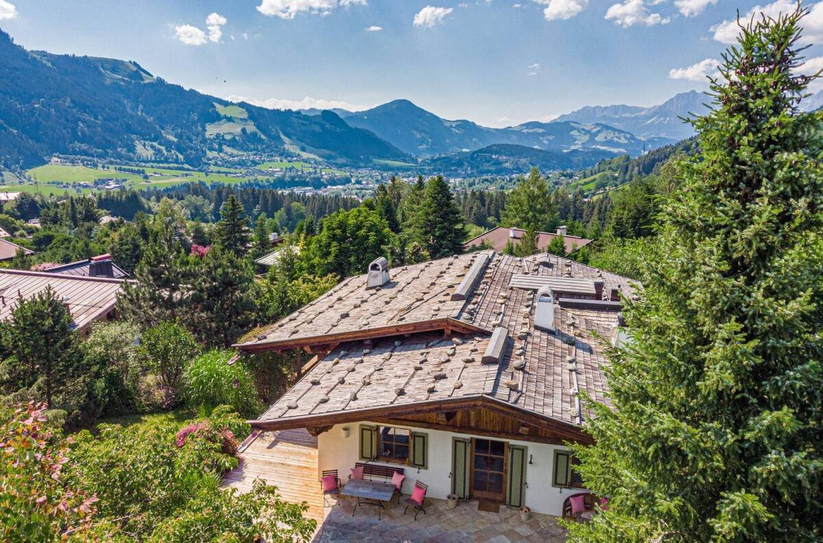 Wenn Sie auf der Suche nach einem besonderen Objekt in traumhafter Lage sind, dann wird Sie diese Immobilie nicht enttäuschen. Es wird bereits beim Betrachten der Außenfassade deutlich, dass hier Wert auf Tradition gepaart mit höchster Qualität gelegt wurde. Das dabei verbaute Holz wurde liebevoll ausgewählt und von Meisterhand angebracht. Verteilt auf drei Etagen verfügen Sie über ca. 480 m² reine Wohnfläche. Auf der untersten Etage befinden sich die ausgesprochen geräumige Garage, fast schon ein Wohnzimmer für Ihre Automobile, der Eingangsbereich mit Garderobe, ein Wirtschaftsraum und die komplette Schwimmbadtechnik. Mit dem Lift oder über eine repräsentative Außentreppe gelangen Sie in das Erdgeschoß dieser wahrhaft schönen Immobilie. Hier finden Sie die eigentliche Schlafebene vor. Drei großzügig bemessene Schlafzimmer, jeweils mit Bad sind geschickt in des wohldurchdachte Wohnkonzept integriert. Ein wunderbares Schwimmbad mit großartigem Wellnessbereich erfreut Sie an kalten und warmen Tagen gleichermaßen. Vor allem im Sommer ist es herrlich bei geöffneten Terrassentüren zu schwimmen und gleichzeitig die idyllische Aussicht zu genießen. Das Obergeschoß, das eigentliche Highlight des Objektes, erreichen Sie über eine wunderschöne Stiege oder wieder mit dem Aufzug. Oben angekommen werden Sie sich sofort für die fantastischen Altholzarbeiten begeistern, vor allem die Altholzbalken an der Decke müssen erwähnt bleiben. Immer wieder wird Sie der herrliche Ausblick durch die Terrassentüren sowie durch die großen Panoramafenster auf Kitzbühel und die umliegende Bergwelt in seinen Bann ziehen. Die obere Etage verfügt neben dem großzügigen Wohnbereich mit Küche noch über einen weiteren Wohnsalon beziehungsweise über ein Büro der Extraklasse. Ein offener Kamin sorgt dabei noch für die dazugehörige Romantik. Durch die Hanglage gelangen Sie vom Wohn-Essbereich auf die traumhafte Terrasse mit angrenzendem Garten. Das ist mit Sicherheit eine Besonderheit am Kitzbüheler Immobilienmarkt, denn man genießt den Ausblick über die Dächer hinweg vom Obergeschoß aus und hat trotzdem noch die Möglichkeit direkt in den Garten zu gehen. Die Terrasse ist an der Westseite umlaufend und geht dann nahtlos in einen Balkon über, welcher einen Blick freigibt, der seinesgleichen sucht. Kitzbühel liegt einem quasi zu Füßen. Dieser Rundumblick und seine Uneinsehbarkeit verleihen dieser Immobilie seinen ganz besonderen Charme. Angebote wie dieses kommen nicht mehr allzu oft vor am Kitzbüheler Immobilienmarkt.