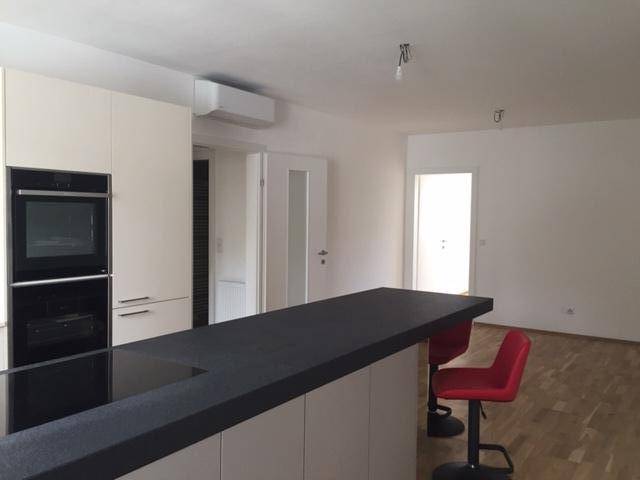 Privat: Neue Wohnung, Grünblick, neue Designerküche (Faulmann) mit Tisch aus Granit, Geschirrspüler, Waschmaschine ... alles neu. Parkettboeden. Klimaanlage. Im Bad helle Steinfliesen. Bad und WC getrennt. Badewanne und Dusche. Nähe ORF Rosenhügel, Nahe Krankenhaus Rosenhügel.