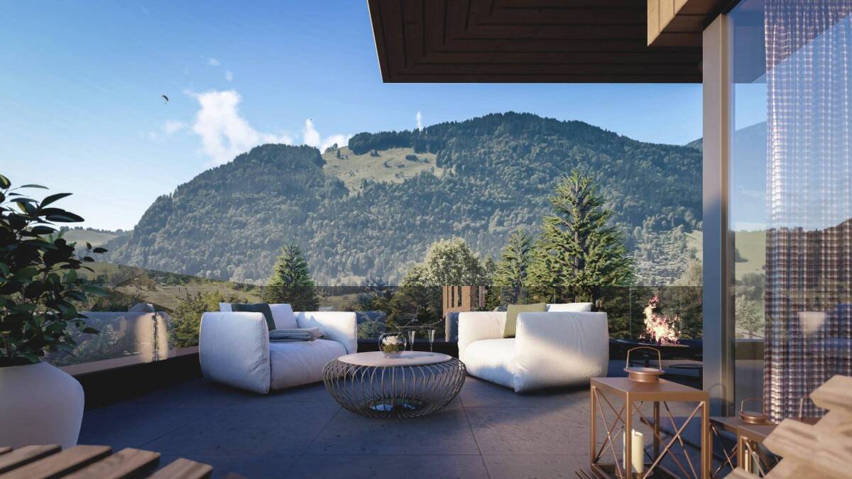 In der Gemeinde Walchsee im Herzen des Naherholungsgebiets Kaiserwinkel, unweit vom gleichnamigen See entfernt, entsteht dieses Neubauprojekt mit mehreren Wohneinheiten und einem Lebensmittelgeschäft im Erdgeschoss. Sämtliche Einrichtungen des täglichen Bedarfs sind in nur wenigen Schritten erreicht. Die Gestaltung der Immobilie mit einer Kombination aus Holz und Glas im modernen Alpenstil verleiht einen ansprechenden Charme. Auf den ca. 150 m² Wohn-/Nutzfläche ist folgende Raumaufteilung geplant: Über den Vorraum gelangt man in den ca. 55 m² großen Wohn-/Ess-/Küchenbereich sowie in das Masterschlafzimmer mit Duschbad en Suite. Ein kleiner Gangbereich führt zu den beiden weiteren Schlafräumen und einem Tageslichtbad mit Dusche. Eine separate Toilette komplettiert den Grundriss dieser Dachgeschosswohnung. Vom Wohnzimmer und allen Schlafräumen hat man Zugang zum Highlight des Objekts. Die überwiegend südlich und westlich ausgerichtete, umlaufende und ca. 190 m² großen Terrasse mit traumhaftem Blick über den Walchsee mit dem Bergpanorama im Hintergrund. Die Immobilie verfügt über ein durchdachtes Wohnkonzept mit einer hochwertigen Grundausstattung sowie einen Personenaufzug. Im Untergeschoss finden Sie einen allgemeinen Fahrradraum und ein zur Wohnung gehöriges Kellerabteil vor. Ein Stellplatz in der hauseigenen Tiefgarage kann für € 25.000,- separat erworben werden. Short Cuts: Wohn-/Nutzfläche 148,79 m², Schlafzimmer 3, Badezimmer 2, Neubau im Erstbezug, direkt im Herzen von Walchsee im Kaiserwinkl, Blick über den See mit Bergen im Hintergrund, hochwertige Grundausstattung, Personenaufzug, moderner Alpenstil - ansprechender Charme, durchdachtes Wohnkonzept, umlaufende Terrasse mit ca. 190 m², überwiegend südlich bzw. westlich ausgerichtet, Fahrradraum zur allgemeinen Nutzung, ca. 5 m² großes Kellerabteil, ein TG-Stellplatz für € 25.000,- zu erwerben, Kaufpreis € 1.420.000,-, HWB 40,4 fGEE 0,82 Es gelten unsere Allgemeinen Geschäftsbedingungen.
