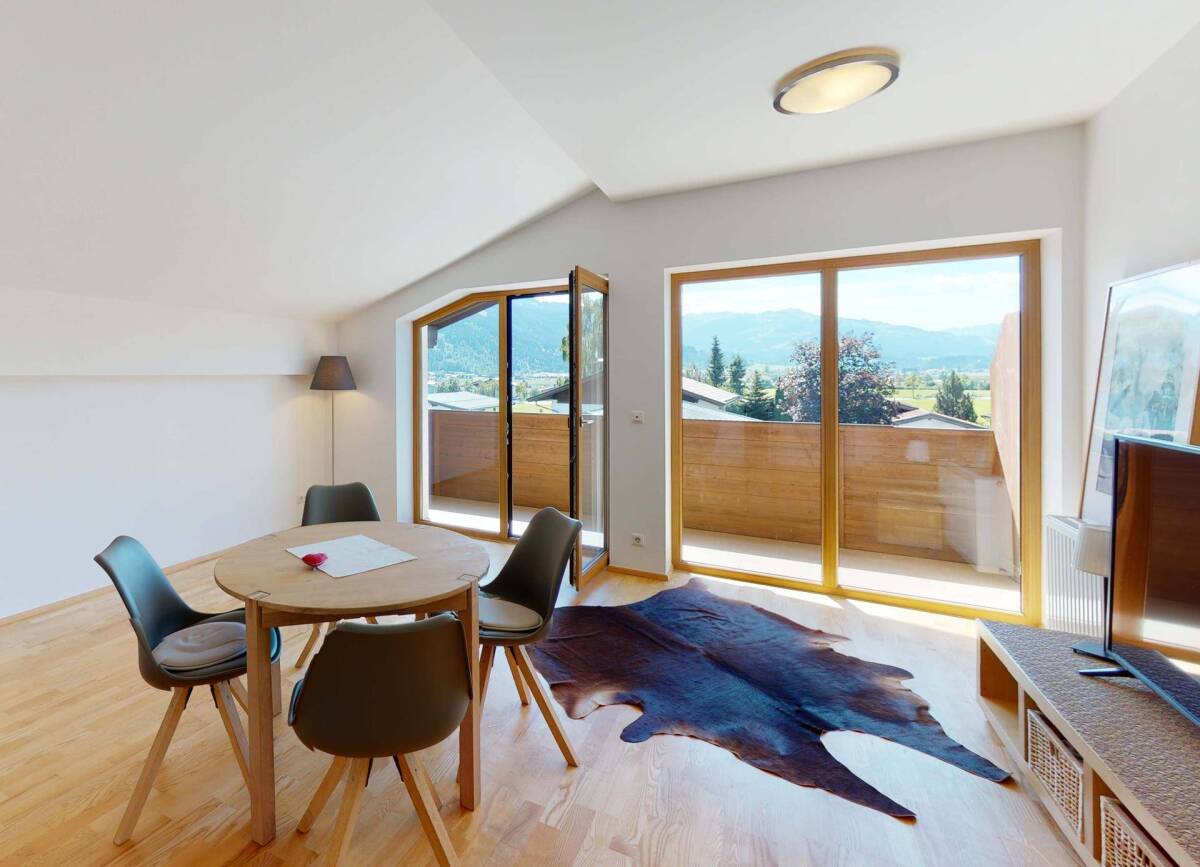 In absoluter Ruhelage von St. Johann befindet sich diese helle und freundliche Dachgeschosswohnung mit zwei Balkonen und Panoramafernsicht auf das Kitzbüheler Horn und den Wilden Kaiser. Der Kaminofen und die Einbauküche im Wohn-und Essbereich laden zu gemütlichen Abenden ein. Das ansprechende Badezimmer ist mit Fußbodenheizung ausgestattet und verfügt über ein Fenster mit Aussicht. Die Skibushaltestelle und die Langlaufloipe sind nur wenige Schritte von der Wohnung entfernt. Das großzügige private Kellerabteil ist mit einer Steckdose für das Aufladen von Elektrobikes und einem Wasseranschluss bestückt. Ein großzügiger Garten, der zum Verweilen einlädt, ein separater Skiraum und ein Besucherstellplatz stehen zusätzlich allen Bewohnern im Haus zur Verfügung. Die Wohnung wurde 2009 zu dem Haus dazu gebaut. Zur Wohnung gehört ein großer privater Außenabstellplatz (ca. 25 m²) . Angaben gem. Eigentümer. Energieangaben: HWB 73 / fGEE 1,55