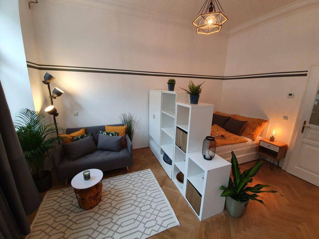 Mitten im 16.Bezirk erwartet euch ein neues, stilvoll eingerichtetes & ruhig gelegenes Studio. Mit den öffentlichen Verkehrsmitteln erreicht man die Wiener Innenstadt in nur 15 min. Die Wohnung besteht aus einem Schlaf-Wohnbereich, Küche, Badezimmer mit Dusche und WC, und einer Terrasse im Innenhof. Der Schlaf-Wohnbereich bietet euch ein bequemes Bett (140x200), ein Schlafsofa, sowie einen Tisch mit 2 Stühlen. Der Raumteiler dient gleichzeitig als Kleiderschrank und Stauraum für eure persönlichen Gegenstände.Wlan und ein Fernseher mit Amazon Fire-TV-Stick stehen euch jederzeit zur Verfügung.Die Küche hat alle wichtigen Geräte, wie E-Herd, Backofen, Geschirrspüler, Mikrowelle und Kühl/-Gefrierkombination. Ihr findet natürlich auch eine kleine Grundausstattung zum Kochen (Öl, Salz, Pfeffer, Töpfe, etc.). Außerdem gibt es noch einen Wasserkocher und eine Nespresso Kaffeemaschine mit einer Auswahl an Tee und Kaffeesorten, die wir für euch bereitgestellt haben. Das Badezimmer ist klein, aber fein. Es verfügt über eine Dusche, ein Waschbecken und WC, mit nötigen Grundausstattung an Hygieneartikel (Toilettenpapier, Handtücher, Seife, Föhn etc.) Gegenüber der Wohnung ist ein Abstellraum, den ihr z.b. als Abstellplatz für eure Koffer nutzen könnt. Dieser Abstellraum führt zu einer sonnigenTerrasse im Innenhof. Die Waschmaschine, die sich in der Küche befindet, könnt ihr natürlich auch verwenden.Zusätzlich bieten wir euch einen Tiefgaragenplatz, in der Nähe der Wohnung an. Energieausweis Dieses Gebäude unterliegt nicht den Anforderungen der EnEV.