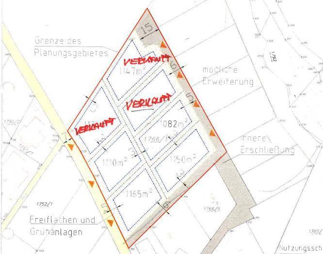 Möglichkeit: Zusammenarbeit mit Endlichdaheim 1 1110m² 2 1082 m² 3 1165m² 4 1150 m² Grundstücke sind aufgeschlossen. Preise: € 35,00 je m² wenn die Fa. Endlichdaheim einen Bauauftrag erhält (mind. Rohbau) Ansonsten € 50,00 je m² Beim Kaufpreis sind die Anschlussgebühren Kanal und Wasser bereits enthalten (Wert: ca. € 8.000,00)