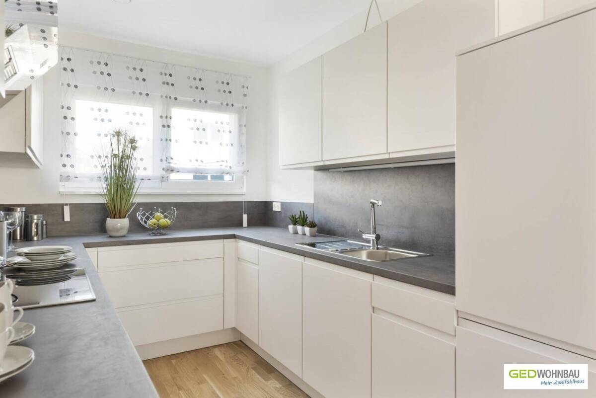 Das Erdgeschoss besteht aus einem lichtdurchfluteten offenen Wohn-, Koch- und Essbereich mit Zugang auf die Terrasse und in den Garten. Auf dieser Ebene befinden sich das Vorzimmer, ein Gäste-WC, der Technikraum und ein zusätzlicher Abstellraum, der auch gut als Büro genutzt werden kann. Im Obergeschoss befinden sich drei getrennt begehbare Schlafzimmer mit einer Galerie (Option für Schrankraum), sowie ein großzügiges Badezimmer mit Fenster. Die Terrasse und der südseitig ausgerichtete Garten laden zum Entspannen und Seele baumeln lassen ein.Ihr schlüsselfertiges GED-Wohlfühlhaus umfasst folgende Ausführungen & Services: Innentüren Sanitärausstattung (Waschbecken, Armaturen, Badewanne, Dusche, WCs) Parkett- sowie Laminatböden und Fliesen Feinspachtelung der Wand- & Deckenflächen (Innenwände) inklusive AnstrichFassade Bauendreinigung Hochwertige Ausstattung Exklusive Parkett- und Laminatböden in allen Wohn- u. SchlafräumenVollholzstiege aus Niederösterreich Moderne Badezimmer mit 2 Waschbecken, Badewanne, Dusche und WCGäste-WC im ErdgeschoßFußbodenheizung im ErdgeschoßWohnraumbelüftungsanlage nach dem neuesten Stand der TechnikEingezäunter Garten2 PKW AbstellplätzeIhre GED-Vorteile auf einen Blick Provisionsfrei, direkt vom BauträgerNiedrigste Energiekosten durch Passivbauweise (ca. € 300,-/ Jahr) Schlüsselfertig – einziehen & wohlfühlen Kaufpreis abzüglich höchster Landesförderung: min. € 40.000,- Passivhausförderung des Landes NÖ + eventuelle Familienförderung Erste Zahlung erst bei SchlüsselübergabeAngenehmes Wohnklima durch Holzmassivbauweise und lichtdurchflutete RäumeVerwendung nachhaltiger & nachwachsender Rohstoffe Verwirklichen Sie Ihren Traum vom eigenen Haus mit Garten – auch ohne Eigenmittel! Wir unterstützen Sie gerne in allen Fragen zur Finanzierung & Förderung! GED-Wohlfühlhäuser werden schlüsselfertig errichtet – provisionsfrei direkt vom Bauträger.Alle GED Wohlfühlhäuser sind klimaaktiv Gold zertifiziert und werden in Passivbauweise aus hochwertigen, ökologischen Materialien errichtet. Das Passivhaus ist ein gut durchdachtes Energiewunder, das darauf abzielt, durch optimale Wärmedämmung und intelligente Belüftungssysteme passive Energiequellen wie die Sonne und sogar die Körpertemperatur seiner Bewohner zu nutzen.Die massive Bauweise in Kreuzlagenvollholzelementen samt Wärmedämmung (Energiekennzahl unter 10 kWh/(m²a)) und das zentrale Lüftungsgerät mit einer Luft-Wasser-Wärmepumpe im Außenbereich helfen mit, ein optimales Wohnklima zu schaffen und die Heizkosten so niedrig wie möglich zu halten.Infrastruktur / EntfernungenGesundheit Arzt <2.000m Apotheke <350m Kinder & Schulen Schule <350m Kindergarten <500m Universität <1.150m Nahversorgung Supermarkt <50m Bäckerei <300m Einkaufszentrum <450m Sonstige Bank <175m Geldautomat <175m Post <425m Polizei <6.500m Verkehr Bus <125m Bahnhof <500m Autobahnanschluss <1.375m Angaben Entfernung Luftlinie / Quelle: OpenStreetMap