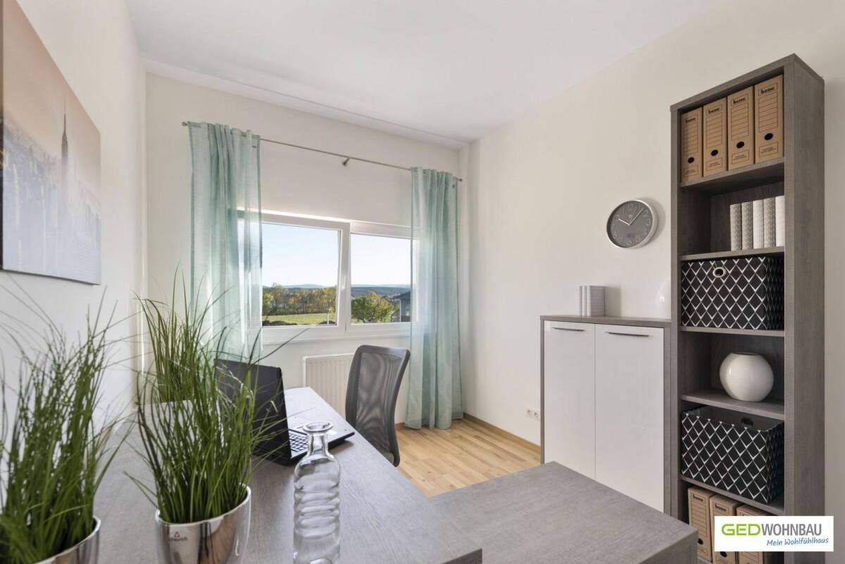 Das Erdgeschoss besteht aus einem lichtdurchfluteten offenen Wohn-, Koch- und Essbereich mit Zugang auf die Terrasse und in den Garten. Auf dieser Ebene befinden sich das Vorzimmer, ein Gäste-WC, der Technikraum und ein zusätzlicher Abstellraum, der auch gut als Büro genutzt werden kann. Im Obergeschoss befinden sich drei getrennt begehbare Schlafzimmer mit einer Galerie (Option für Schrankraum), sowie ein großzügiges Badezimmer mit Fenster. Die Terrasse und der südseitig ausgerichtete Garten laden zum Entspannen und Seele baumeln lassen ein.Ihr schlüsselfertiges GED-Wohlfühlhaus umfasst folgende Ausführungen & Services: Innentüren Sanitärausstattung (Waschbecken, Armaturen, Badewanne, Dusche, WCs) Parkett- sowie Laminatböden und Fliesen Feinspachtelung der Wand- & Deckenflächen (Innenwände) inklusive AnstrichFassade Bauendreinigung Hochwertige Ausstattung Exklusive Parkett- und Laminatböden in allen Wohn- u. SchlafräumenVollholzstiege aus Niederösterreich Moderne Badezimmer mit 2 Waschbecken, Badewanne, Dusche und WCGäste-WC im ErdgeschoßFußbodenheizung im ErdgeschoßWohnraumbelüftungsanlage nach dem neuesten Stand der TechnikEingezäunter Garten2 PKW AbstellplätzeIhre GED-Vorteile auf einen Blick Provisionsfrei, direkt vom BauträgerNiedrigste Energiekosten durch Passivbauweise (ca. € 300,-/ Jahr) Schlüsselfertig – einziehen & wohlfühlen Kaufpreis abzüglich höchster Landesförderung: min. € 40.000,- Passivhausförderung des Landes NÖ + eventuelle Familienförderung Erste Zahlung erst bei SchlüsselübergabeAngenehmes Wohnklima durch Holzmassivbauweise und lichtdurchflutete RäumeVerwendung nachhaltiger & nachwachsender Rohstoffe Verwirklichen Sie Ihren Traum vom eigenen Haus mit Garten – auch ohne Eigenmittel! Wir unterstützen Sie gerne in allen Fragen zur Finanzierung & Förderung! GED-Wohlfühlhäuser werden schlüsselfertig errichtet – provisionsfrei direkt vom Bauträger.Alle GED Wohlfühlhäuser sind klimaaktiv Gold zertifiziert und werden in Passivbauweise aus hochwertigen, ökologischen Materialien errichtet. Das Passivhaus ist ein gut durchdachtes Energiewunder, das darauf abzielt, durch optimale Wärmedämmung und intelligente Belüftungssysteme passive Energiequellen wie die Sonne und sogar die Körpertemperatur seiner Bewohner zu nutzen.Die massive Bauweise in Kreuzlagenvollholzelementen samt Wärmedämmung (Energiekennzahl unter 10 kWh/(m²a)) und das zentrale Lüftungsgerät mit einer Luft-Wasser-Wärmepumpe im Außenbereich helfen mit, ein optimales Wohnklima zu schaffen und die Heizkosten so niedrig wie möglich zu halten.Infrastruktur / EntfernungenGesundheit Arzt <2.000m Apotheke <350m Kinder & Schulen Schule <350m Kindergarten <500m Universität <1.150m Nahversorgung Supermarkt <50m Bäckerei <300m Einkaufszentrum <450m Sonstige Bank <175m Geldautomat <175m Post <425m Polizei <6.500m Verkehr Bus <125m Bahnhof <500m Autobahnanschluss <1.375m Angaben Entfernung Luftlinie / Quelle: OpenStreetMap