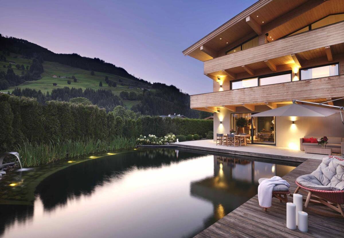 Dieses wunderschöne Eigenheim wurde erst vor ein paar Jahren komplett kernsaniert und revitalisiert, sodass moderne Architektur und Tiroler Charme wunderbar miteinander harmonieren. Mit dieser Liegenschaft erwirbt man ein besonders ansprechendes Schmuckstück, ein „Mehrgenerationenhaus“ mit insgesamt drei exklusiv ausgestatteten Wohneinheiten, das neben dem wundervollen Ausblick auf die umliegende Bergwelt, unzählige Sonnenstunden, Ruhe und absolute Privatsphäre bietet. Die Liegenschaft ist vollständig und sehr geschmackvoll möbliert und begeistert in gelungener Kombination mit dem großzügigen Wohnraumkonzept, den ansprechenden Raumhöhen sowie den großen Fensterfronten mit modernstem Wohnkomfort und gemütlichem Wohlfühlambiente. Das lichtdurchflutete Penthouse mit außergewöhnlichen Raumhöhen beeindruckt mit einer sensationellen 30 m2 Dachterrasse, von der aus man einen atemberaubenden Blick auf die umliegende Bergwelt genießt. Schon beim Betreten dieser südlich ausgerichteten Wohneinheit heißt Sie ein ansprechendes Foyer mit raumhohen Einbauschränken sowie einem Gäste-WC willkommen. Von hier aus ist auch der geräumige Master-Schlafbereich mit angrenzendem, sehr hochwertig ausgestattetem Badezimmer mit Dusche und Badewanne zugängig. Das Kinder-bzw. Gästezimmer mit Bad en suite befindet sich vis á vis. Für die beiden Bäder wurden qualitativ hochwertige Materialien, wie übergroße Fliesen und trendige Armaturen ausgewählt. Das Highlight dieses eleganten Refugiums stellt mit Sicherheit der wunderschöne, offen gestaltete Wohn- / Essbereich mit Kaminofen und der Designerküche mit Gaggenau-Geräten dar. Die gemütliche Gartenmaisonette, empfängt Sie im Erdgeschoss mit einem äußerst repräsentativen Eingangsbereich mit großzügigem Stauraum, sowie einer edlen Wohnküche mit einladendem Essbereich und offenem Kamin, der an kalten Wintertagen für wohlige Atmosphäre sorgt. Die Sonnenterrasse zum wunderschön angelegten Schwimmteich hin, bietet viel Platz, um entspannte Schwimmtage und Grillabende zu verbringen. Im ersten Obergeschoss befinden sich zwei stilvolle Schlafzimmer mit Bad en Suite, welches mit übergroßen Fliesen, trendigen Armaturen, einer Dusche, Badewanne und zusätzlich mit einer Sauna ausgestattet ist. Das geräumige Wohnzimmer mit modernem, offenem Kamin verleiht diesem Stockwerk eine Art "Loft-Feeling" und durch die gemütliche, helle Einrichtung und den umlaufenden Balkon verweilt man hier sehr gerne. Abgerundet wird dieser Wohnkomfort durch einer stylischen Gäste-Toilette sowie einem Wirtschafts- und Technikraum im Untergeschoss. Im Erdgeschoss befindet sich zudem ein weiterer großzügiger Bereich der als Geschäftslokal (Büro) genutzt wurde. Hier besteht die Möglichkeit zur freien Gestaltung, z.B. könnten diese Räumlichkeiten als zusätzliche Gästesuite konzipiert werden. Die großen Lagerflächen im Untergeschoss würden sich gut für eine Wellnessoase mit Indoor- Pool anbieten. Ein BUS-System, 3-fach verglaste und zum Teil bodentiefe Fensterflächen, ein Finger-Print-Schloss sowie der in 2019 nachträglich eingebaute Personenlift bieten auch in technischen Belangen Wohnen auf höchstem Niveau. Für Ihre Fahrzeuge steht eine großzügige Garage für drei bis vier Fahrzeuge sowie Stellplätze im Freien zur Verfügung.