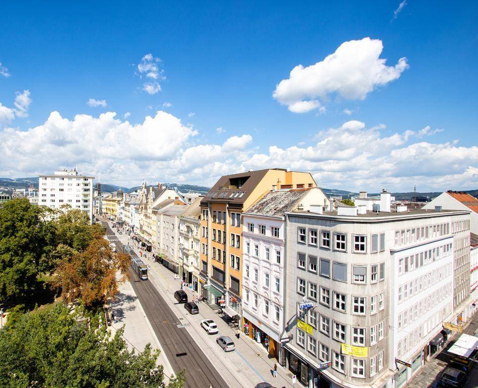 Top Lage - klimatisierte 3 Zimmer Dachgeschoßwohnung - Penthouse Diese schöne Wohnung ist bequem von der Straßenbahn oder dem Linzer Hauptbahnhof aus zu erreichen und befindet sich mitten an der Landstraße. Die Grundausstattung der Wohnung ist hochwertig und sehr gepflegt. Die Küche ist möbliert und im Mietpreis integriert. Raumaufteilung: • VR • Abstellraum • 2 Bäder (Gästebadezimmer mit Dusche, Bad en suite mit Badewanne und Doppelwaschtisch) • 2 Schlafzimmer (Ein Schlafzimmer mit Zugang auf den Balkon) • Wohn/Ess/Küche Zugang auf Terrasse und Balkon • Balkon • Terrasse In Unmittelbarer Nähe haben Sie den Schillerplatz und als Nachbarn das Casino. Geschäfte, Apotheke bzw. alles für den täglichen Bedarf befindet sich vor der Türe. Haben wie Ihr Interesse geweckt? Ansehen lohnt sich - wir freuen uns über Ihr Interesse! Für weitere Fragen stehen wir Ihnen gerne unter der Rufnummer 0664 386 26 80 zur Verfügung.Angaben gemäß gesetzlichem Erfordernis: Miete € 1135 zzgl 10% USt. Betriebskosten € 111,18 zzgl 20% USt. Sonstiges € 14,78 zzgl 10% USt. Umsatzsteuer € 137,22 ------------------------------------------------------------------ Gesamtbetrag € 1398,18 ------------------------------------------------------------------ Heizwärmebedarf: 120.3 kWh/(m²a) Klasse Heizwärmebedarf: D