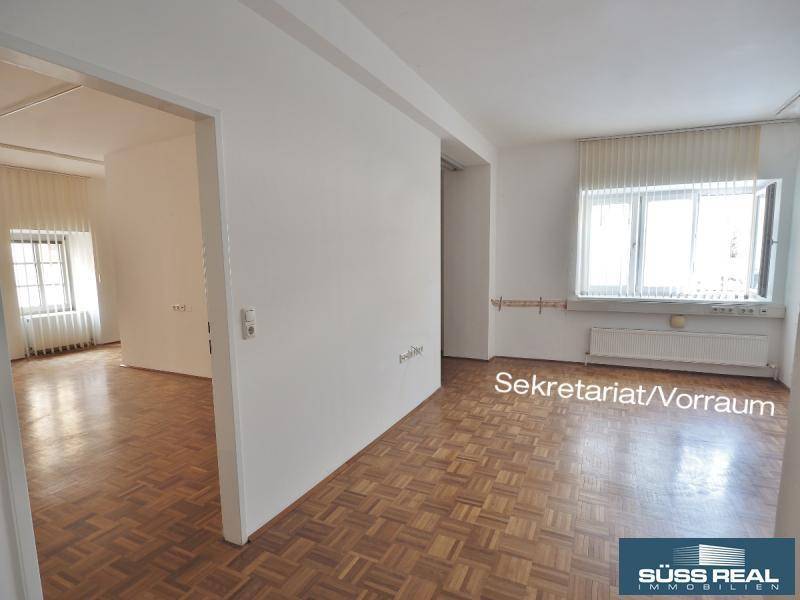 Diese innerstädtische Immobilie bietet Ihnen eine beeindruckende und historisch geprägte Lage für Ihren neuen Bürostandort. Das Büro befindet sich im ersten Obergeschoss des denkmalgeschützten und gut erhaltenen Rechbergerhauses, welches Sie direkt vom Ennser Hauptplatz aus betreten können. Die Treppe führt Sie in den ersten Stock, wo sich auf der rechten Seite Ihr zukünftiges Büro befindet. Über das große Vorzimmer, das auch als Empfang/Sekretariat genutzt werden kann, gelangen Sie in die zwei Büroräume, die Küche, das WC und den Abstellraum. Diese Immobilie wird befristet vermietet und eignet aufgrund der praktischen Raumaufteilung sehr gut als Büro, Kanzlei oder Praxis. Der westlich ausgerichtete Büroraum sowie das Vorzimmer verfügen je über ein eigenes Klimagerät. Von beiden Räumen haben Sie Ausblick auf einen ruhigen und überdachten Innenhof. Der südlich ausgerichtete Büroraum bietet ausreichend Platz für zwei Arbeitsplätze oder einen großen Besprechungstisch. Miete Netto EUR 460,- + BK Netto EUR 163,64 = Gesamtmiete Netto EUR 623,64 Bitte beachten Sie, dass diese Immobilie über keinen Lift bzw. keine Parkplätze verfügt. Ich freue mich auf Ihre Anfrage und stehe gerne für eine Besichtigung zur Verfügung!Angaben gemäß gesetzlichem Erfordernis: Heizwärmebedarf: 77.0 kWh/(m²a)