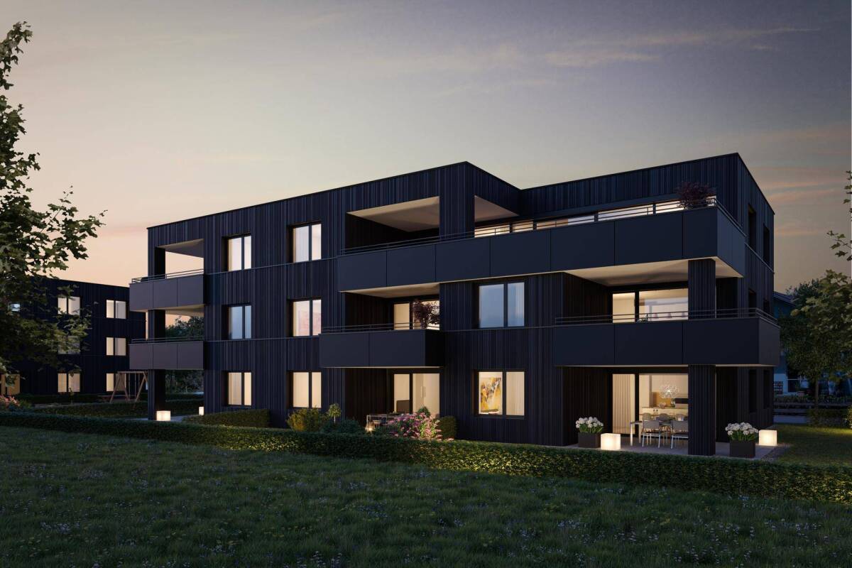 ZURÜCKLEHNEN UND GENIESSEN Wohnkomfort, Natur und Ruhe werden im Projekt Austraße vereint. Sehr ruhig im schönen Feldkircher Ortsteil Gisingen gelegen, entsteht eine Wohnanlage bestehend aus drei Baukörpern mit jeweils nur acht Wohnungen. Die zeitlose Architektur und die ansprechende Holzfassade prägen die Erscheinung des Neubauprojekts. Es werden 2-, 3- und 4-Zimmer Wohnungen realisiert. Eine Tiefgarage sowie Kellerabteile runden das Konzept ab. Der Fokus liegt auf dem Wesentlichen, sodass die Bewohner ihren Alltag entspannt meistern können und viel Zeit und Raum für Erholung in den eigenen vier Wänden haben. Dank der sonnenverwöhnten Lage und den Terrassen oder Gärten, über die jede Einheit verfügt, steht gemütlichen Stunden unter freiem Himmel nichts im Wege. Auch in der nahen Umgebung finden sich ausgezeichnete Möglichkeiten für die Freizeitgestaltung: das Erlebnis Waldbad Feldkirch sowie die Baggerlöcher, das Waldstadion und zahlreiche Spaziermöglichkeiten liegen nicht weit entfernt.