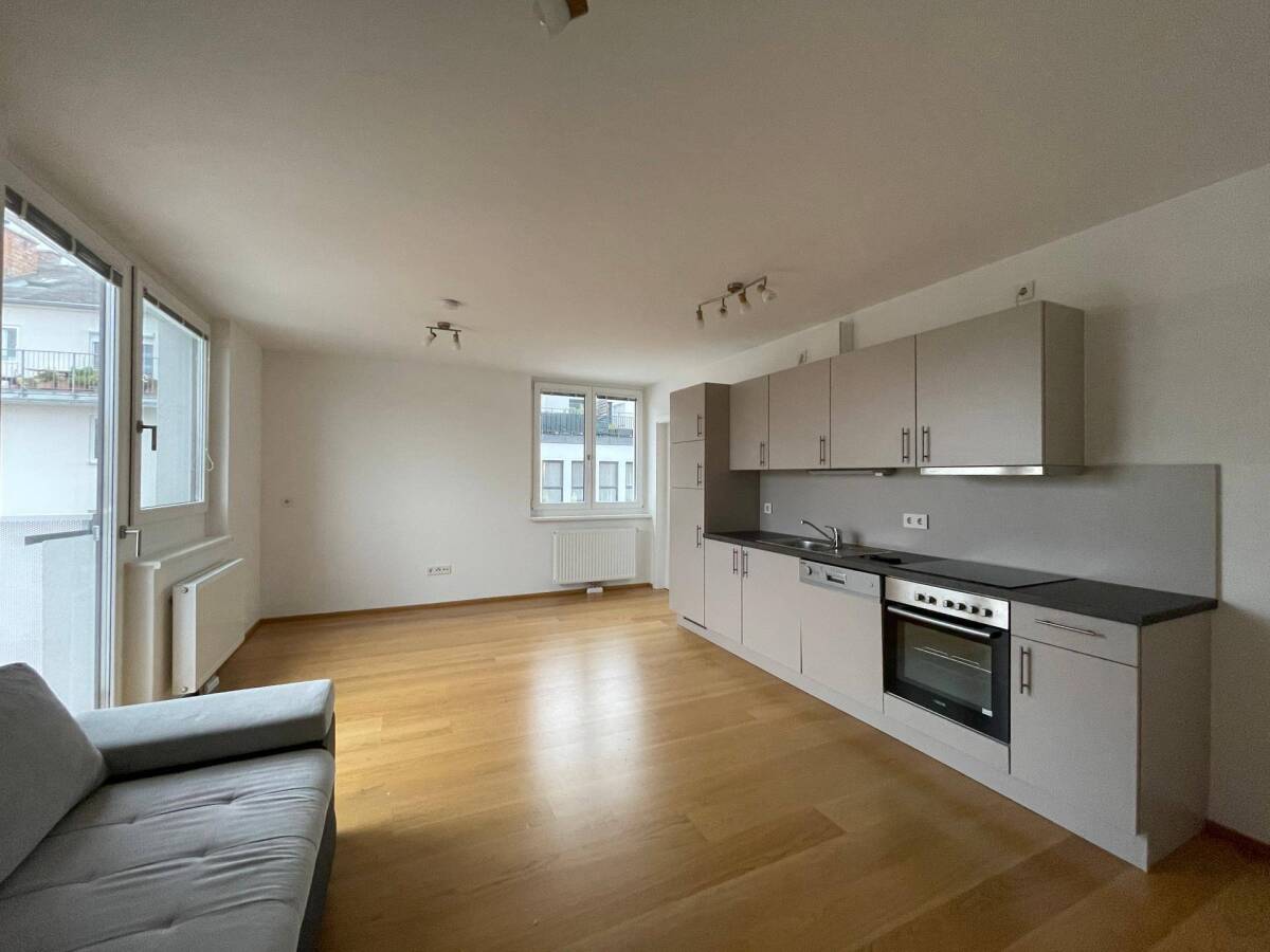 Zur Vermietung gelangt eine entzückende 2-Zimmer-Wohnung mit perfekter Aufteilung. Sie betreten die Wohnung durch eine zertifizierte Sicherheitstüre. Vom großzügigen Vorzimmer aus, welches genügend Platz für eine Garderobe bietet, gelangen Sie in die Nebenräume: • Badezimmer mit moderner Verfliesung und Badewanne • Separates WC • Praktischer Abstellraum Weiters ist vom Vorzimmer aus auch das mit Echtholz-Parkettboden ausgestattete Wohnzimmer zu erreichen. Dieses verfügt über eine voll ausgestattete Küchenzeile (inklusive Kühl- und Gefrierschrank, Geschirrspüler, Kochfeld und Backrohr). Das schöne Eckzimmer verfügt über eine natürliche Belichtung von zwei Seiten und bietet ausreichend Platz für Ess- und Wohnbereich. Ein besonderes Schmankerl ist der feine Balkon ohne unmittelbares Gegenüber. Über das Wohnzimmer gelangen Sie in das ruhig gelegen Schlafzimmer. Die Wohnung befindet sich im 5. Liftstock, ist somit besonders ruhig und fernab von Straßenlärm gelegen und bekommt durch die hohe Stockwerkslage viel natürliches Licht. Selbstverständlich verfügt das Haus über einen Aufzug. Bei Bedarf ist auch ein kostenpflichtiger Garagenplatz vorhanden. Bei dem Objekt handelt es sich um einen Neubau. Dadurch genießen Sie die typischen Vorteile einer zeitgemäßen Architektur: vernünftige Fenster, Wärmefassade, Zentralheizung über Fernwärme, uvm. Bitte kontaktieren Sie uns bei Interesse schriftlich: nm@nikomartini.com Für einen erfolgreichen Vertragsabschluss ist ein aufrechtes Dienstverhältnis notwendig oder eine anderweitige Sicherstellung in Form einer Bürgschaft oder höheren Kaution. • LAGE* Die gegenständliche Liegenschaft befindet sich in Toplage des 20. Wiener Gemeindebezirks - in der Raffaelgasse - und verfügt über eine erstklassige Anbindung an die öffentlichen Verkehrsmittel: die U-Bahn Stationen U6-Jägerstraße und U4-Friedensbrücke sind ein paar Gehminuten entfernt. Eine sehr gute Verbindung bieten auch diverse Straßenbahn- und Buslinien, wie z.B. die Linie 31, 5, 5A oder 5B. Für Entspannung, Sport und Freizeit im Grünen, öffnet der nahe gelegene Augarten seine Tore. Die Wallensteinstraße bietet Ihnen als Einkaufsstraße eine gute Versorgung für jegliche Dinge des persönlichen Bedarfs – eine gute Nahversorgung ist somit auch garantiert. • Sonstiges* Auf Wunsch können von den bisherigen Mietern diverse Möbel übernommen werden. Die Wohnung war nur ein dreiviertel Jahr vermietet. Dementsprechend sind die Möbel neuwertig. Mitunter kann man Schränke, ein Bett, eine neue Waschmaschine mit Garantie, Sofa, etc. erwerben. Die Übernahme der Möbel ist nicht verpflichtend. Die Wohnung kann auch geräumt übergeben werden.