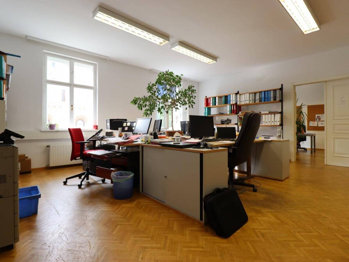Die hellen Büroräumlichkeiten liegen im zweiten Obergeschoss eines Altbaus. Das Gebäude wird über ein repräsentatives Entrée betreten. Die Büroflächen sind über einen Personenlift sowie über ein Stiegenhaus erschlossen.Das Entrée ist großzügig und bietet Platz für einen Wartebereich mit Sitzgelegenheit sowie für Schränke oder Büromöbel.Insgesamt verfügt das Büro über sechs separate Räume, die teilweise miteinander verbunden sind und mit unterschiedlichen Flächen zur Verfügung stehen. Das Eckbüro sowie auch die Haupträume sind straßenseitig ausgerichtet. Hofseitig gibt es einen separat gelegenen Büroraum sowie einen Gemeinschaftsraum mit offener Küche, die Platz für einen großen Tisch und Abstellflächen bietet.Ein Serverraum und ein separater Abstellraum stehen zur Verfügung. Getrennte Toiletten sind eingerichtet.Die Büroräume sind alle voll verkabelt. Die Kabelkanäle sind unterputz verlegt. Bodendosen sind installiert. Die Decken wurden abgehängt und bieten Möglichkeit für eine zeitgemäße Büroraumbeleuchtung.Alle Räume werden frisch ausgemalt übergeben sowie der Boden entsprechend der bestehenden Abnutzung erneuert.Hinweis gemäß Energieausweisvorlagegesetz: Ein Energieausweis wurde vom Eigentümer bzw. Verkäufer, nach unserer Aufklärung über die ab 1.12.2012 geltende generelle Vorlagepflicht, sowie Aufforderung zu seiner Erstellung noch nicht vorgelegt. Daher gilt zumindest eine dem Alter und der Art des Gebäudes entsprechende Gesamtenergieeffizienz als vereinbart. Wir übernehmen keinerlei Gewähr oder Haftung für die tatsächliche Energieeffizienz der angebotenen Immobilie.Infrastruktur / EntfernungenGesundheit Arzt <500m Apotheke <500m Krankenhaus <1.000m Klinik <1.500m Kinder & Schulen Schule <500m Kindergarten <500m Universität <1.000m Höhere Schule <1.500m Nahversorgung Supermarkt <500m Bäckerei <500m Einkaufszentrum <1.500m Sonstige Bank <500m Geldautomat <500m Post <1.000m Polizei <1.000m Verkehr Bus <500m Straßenbahn <500m U-Bahn <1.000m Bahnhof <500m Autobahnanschluss <2.000m Angaben Entfernung Luftlinie / Quelle: OpenStreetMap
