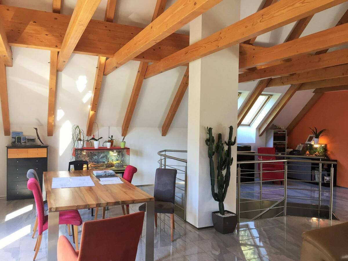Haus mit 169 m² DG-Wohnung, 78 m² EG-Wohnung, 165 m² Nebenfläche auf 687 m² Grundstück + 6.320 m² Wiese & Wald In der Ortschaft Kleinraming, in verkehrsgünstiger, dörflicher Lage, nahe dem Raming-Bach steht dieses geräumige Wohnhaus (ehem. Landwirtschaft). Ursprünglich im 19. Jhdt. erbaut wurde es in den Jahren 1995 – 2003 umfassend auf die heutige Größe ausgebaut. Auf dem 687 m² Grundstück (Widmung M = gemischtes Baugebiet) steht das Wohnhaus mit rd. 247 m² Wohnfläche (EG- und DG-Wohnung). Die 6.320 m² Wiesen-/Waldfläche (Widmung LN = landwirtschaftliche Nutzfläche) wird aktuell durch benachbarte Ziegen genutzt. Falls erwünscht, kann auch nur das Wohnhaus inkl. 687 m² Grundstück – ohne die landwirtschaftliche Fläche - erworben werden. Die 247 m² Wohnfläche teilen sich in: • 169 m² Dachgeschoss-Wohnung mit bis zu 5 m Raumhöhe • 78 m² Erdgeschoss-Wohnung Beide Wohnungen verfügen über getrennte Eingänge. Weiters stehen noch rd. 165 m² Nebenfläche zur Verfügung und gliedern sich in: • rd. 45 m² Heizraum, Werkstatt, Lager im Erdgeschoß • rd. 120 m² ausbaufähige Rohbau-Fläche mit ca. 120 m² im Obergeschoß Die 169 m² Dachgeschoß-Wohnung ist ein Highlight für sich und gliedert sich in einen beindruckenden, bis zu 5 m hohen 69 m² Wohn-/Ess-/Küchenbereich, Vorraum, Badezimmer mit Dusche/Wanne, WC, Elternschlafzimmer mit Schrankraum, zwei Kinderzimmer, Wirtschaftsraum und Garderobe. Eine komplette EWE-Küche ist im VK-Preis inkludiert. Hochwertiger Natursteinboden mit Fußbodenheizung, Dachflächenfenster, Balkon und bodentiefe Fenster verleihen dieser Wohnung einen außergewöhnlichen Flair. Die 78 m² Erdgeschoß-Wohnung bietet eine heimelige Atmosphäre und gliedert sich in einen großzügigen Vorraum mit Wandverbau, einen großen Sanitärraum mit Badewanne und Toilette, bzw. Hauswirtschaftsfläche, eine vollständig eingerichtete Küche, ein Wohnzimmer und zwei Schlafzimmer. Das rd. 120 m² Obergeschoß ist völlig entkernt und bietet noch viel Raum für Ihre Ideen und Wünsche, ob Wohn- oder Gewerbefläche, eine vielfältige Nutzung ist möglich, der Ausbau ist noch erforderlich. Die Beheizung erfolgt mittels Holz-Stückgut-Zentralheizung, ebenso wie die Warmwasseraufbereitung, die auch durch Nachtstrom möglich ist. Auf der Wiese über dem Haus befindet sich noch eine Holzhütte mit zwei Räumen – in gutem Zustand. Sonstiges: • Altbau 19. Jhdt., Umbau/Ausbau EG 1995, DG 2003 • Ziegel-/Stein-Mischbau, Dach im Zuge des Ausbaues vollständig erneuert • Holz-Isolierglasfenster 2-fach, mit Wärmeschutz • Natursteinboden im DG, Parkettböden im EG • Fußbodenheizung DG, Heizkörper EG • Holz-Stückgut-Zentralheizung, Warmwasserbereitung auch mittels Nachtstrom möglich • Ortswasserleitung, Kanal • 3-4 PKW-Stellplätze • Holzhütte mit 2 Räumen ca. 10 m², auf Wiesenhang Fertigstellungsarbeiten: • Hausfassade • Gesamtes Obergeschoß • Zufahrtstraße wird neu vermessen und 2021 durch Gemeinde geregelt – Kosten trägt der Verkäufer Infrastruktur: • KiGa, Hort, VS, NMS, Spar in Kleinraming, Arzt in St. Ulrich b. St. • sämtliche Infrastruktureinrichtungen in der nahegelegenen Bezirksstadt Steyr Entfernungen: • 1 km Kleinraming • 7 km St. Ulrich b. Steyr • 10 km Steyr • 24 km Großraming • 40 km Amstetten • 50 km Linz • 170 km Wien Betriebskosten: • € 325,- /Quartal (Kanal, Wasser, Müll, Gst.B) • € 100,- /Monat Brennholz 50cm Scheiter • € 80,- /Monat Strom DG, € 40,- Strom für EG Energiekennzahl: • HWB 125 kWh, • fGEE 2,18 Provision: • 3 % vom Kaufpreis, zzgl. 20% USt Kaufpreis: • € 388.000,- zzgl. Kaufnebenkosten Info & Besichtigung: • 0664 / 122 74 64