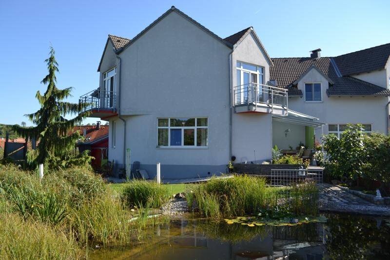 GROSSZÜGIGES WOHNEN IN HERRLICHER GRÜNRUHELAGE IN UNMITTELBARER NÄHE VON MAUTERN AN DER DONAU Die hochwertig ausgeführte Liegenschaft wurde in Form eines Doppelhauses errichtet, wovon die größere Einheit zum Verkauf steht. Die Liegenschaft verfügt über eine top-ausgeführte Wohnfläche von ca. 265 m² und gliedert sich in -Erdgeschoß mit repräsentativem und großzügigem Wohn-Ess-Küchenbereich mit ca. 130 m², sowie Eingangsbereich, WC und Abstellraum. Genießen Sie die Zeit im lichtdurchfluteten Büro- und Essbereich oder im gemütlichen Wohnbereich mit Ausgang auf die geschützte gartenseitige Loggia. -Obergeschoß mit sehr großem Schlafzimmer mit Schrankraum (gesamt ca. 38 m²) mit eigenem Balkon mit traumhaftem Fernblick ins Grüne, welcher das Aufstehen morgens sicher erleichtert, 2 Kinderzimmer – jeweils mit Ausgang auf einen gemeinsamen Balkon, Büro oder Wirtschaftsraum, riesiges – fast 20 m² großes – Badezimmer mit eigenem Balkon, welches sowohl vom zentralen Vorraum als auch direkt vom Schlafzimmer erreicht werden kann, sowie der offene Galeriebereich zum darunter liegenden Büro-/Essbereich. Die Liegenschaft ist komplett unterkellert und bietet hier einen Sauna-/Fitness und Wellnessbereich zum Relaxen mit anschließenden Ruhebereich sowie diverse Vorrats- und Technikräume. Im traumhaften Garten befindet sich – unter anderem - derzeit ein gemeinsamer Schwimmteich mit dem Eigentümer des zweiten Hausanteils. Dieser überlegt auf seiner Seite des Grundstücks den Schwimmteich aufzufüllen und wieder eine Rasenfläche herzustellen. Dies steht natürlich auch dem Käufer dieser Liegenschaft frei oder man einigt sich mit dem Nachbarn, den Schwimmteich doch weiterhin gemeinsam zu behalten. Im rückwärtigen Bereich des idyllisch und liebevoll angelegten Gartens befindet sich eine weitere Terrasse mit Grillbereich. Die Beheizung der Liegenschaft verfügt über eine neue Pellets-Zentralheizung (2 Jahre alt), die ein kostengünstiges und zeitgemäßes Heizen ermöglicht. ÜBERZEUGEN SIE SICH SELBST BEI EINER UNVERBINDLICHEN BESICHTIGUNG VON DEN QUALITÄTEN DIESER REPRÄSENTATIVEN LIEGENSCHAFT !!!