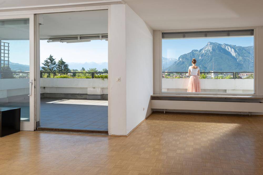 Das Penthouse ist das Statussymbol des Städters und tatsächlich nur ganz oben möglich! Die Definition Penthouse wird hier im 7en und zugleich letzten Stockwerk zu 100% erfüllt und das wohl wichtigste Merkmal dabei: die aussichtsreiche 80 m² Dachterrasse! Diese echte Wohnperle befindet sich in einer gepflegten Wohnanlage und kann als wahres Raumwunder mit atemberaubenden Panoramablick bezeichnet werden. Die erhabene Ruhelage bei gleichzeitig optimaler Infrastruktur, wird nur noch getoppt durch die XXL-Sonnenterrasse welche sensationelle Aussichten auf die Stadt Salzburg bis weit in die umliegende Landschaft ermöglicht. Herzstück bildet der geräumige Wohnbereich mit ca. 42 m² und überzeugt mit sonnigen Charme und absoluter Großzügigkeit. Die hochwertige und voll ausgestattete Einbauküche lädt zum Kochen und Genießen ein sowie zwei ruhige Schlafzimmer, eines davon bereits mit praktischen Einbauschränken ausgestattet. Gegenüber befindet sich das moderne Badezimmer mit Dusche und freistehender Wanne, welches ebenso imponierende Aussichten ermöglicht. Ein Gäste-WC und ein nützlicher Hauswirtschaftsraum runden das Angebot ab. Der Wohnung zugehörig ist noch ein separates Kellerabteil sowie ein TG-Platz, welcher im Kaufpreis bereits inkludiert ist. (Optional könnte noch ein zweiter Garagenplatz dazu erworben werden). Die Betriebskosten inkl. Instandhaltungsrücklage, Warmwasser und Heizung belaufen sich auf ca. EUR 477,00 sowie die BK für die Garage auf EUR 20,00 per Monat. EA in Arbeit. Für weitere Fragen bzw. zur Vereinbarung von Besichtigungsterminen stehen wir Ihnen unter der Telefonnummer +43 662 431545 zur Verfügung. Nebenkosten bis zu 10 % abhängig vom Kaufpreis, von der Vertragserrichtung, der grundbücherlichen Sicherstellung des Kaufpreises und dem Verwandtschaftsverhältnis.